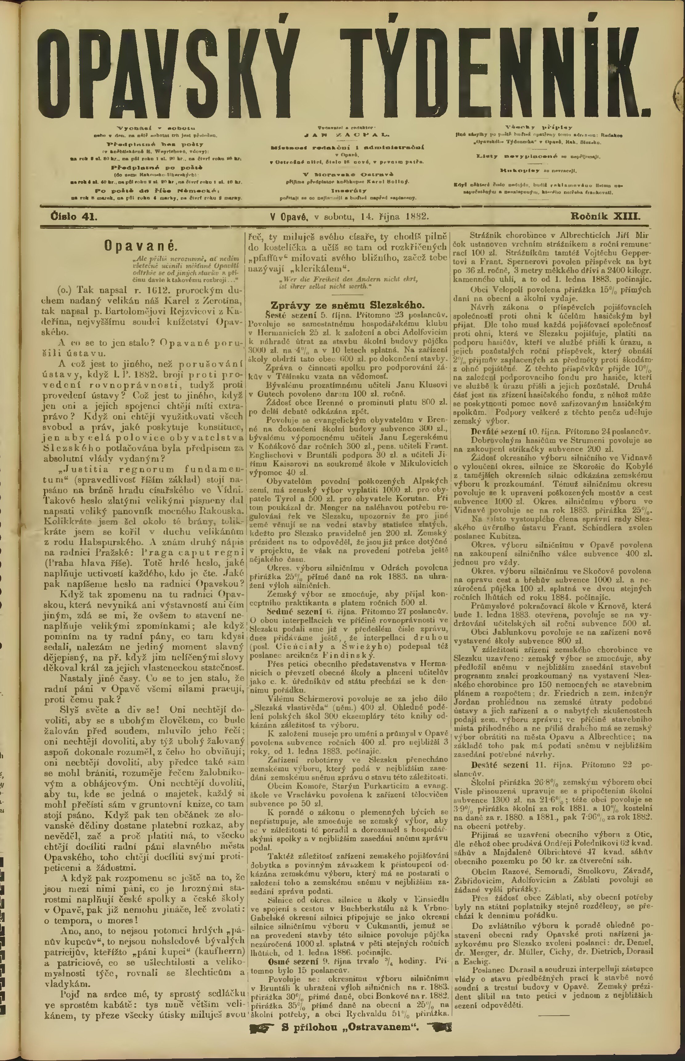 * Datum vydání výtisku: 14.10.1882 Číslo výtisku: 41