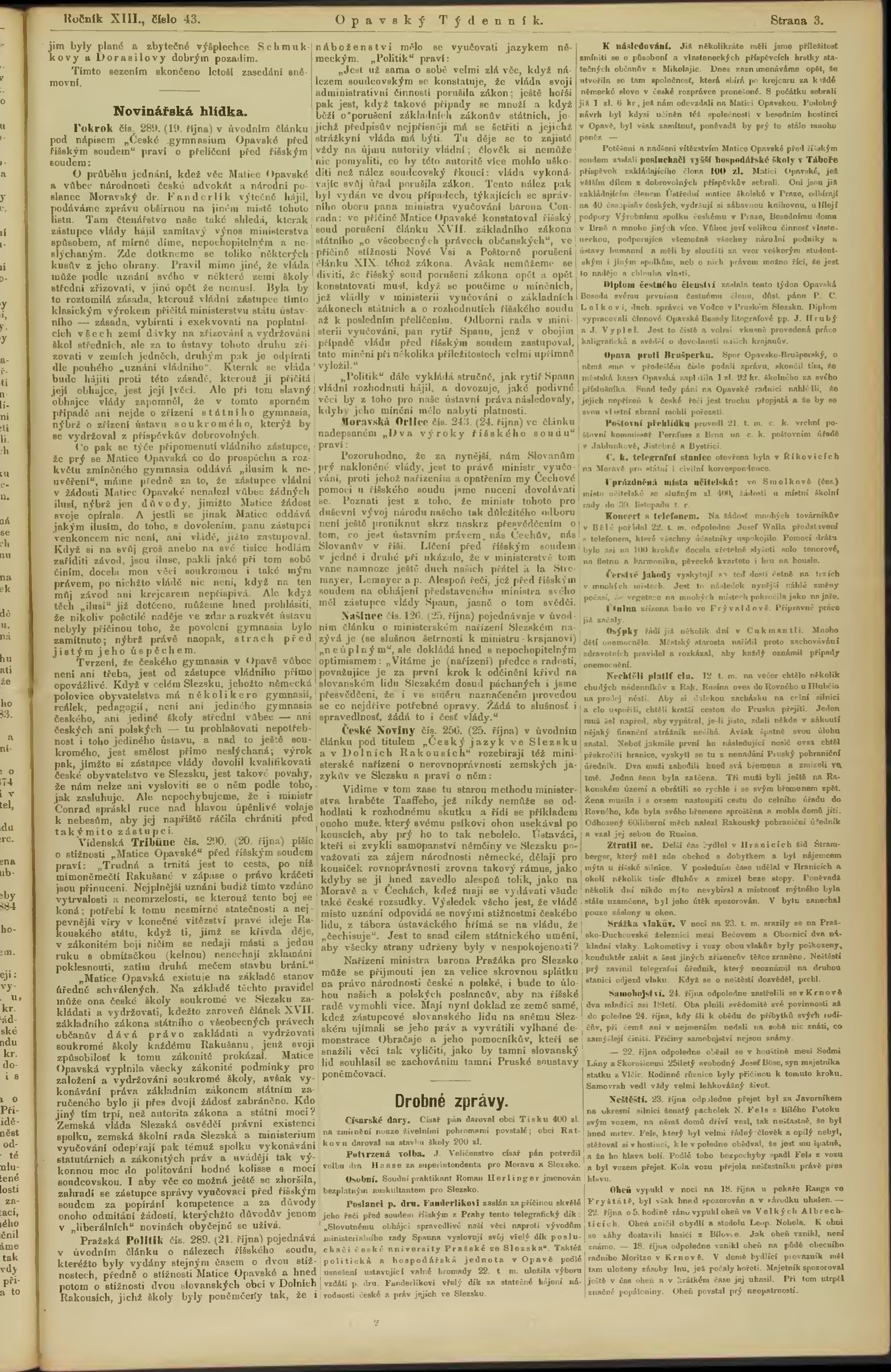 * Datum vydání výtisku: 28.10.1882 Číslo výtisku: 43