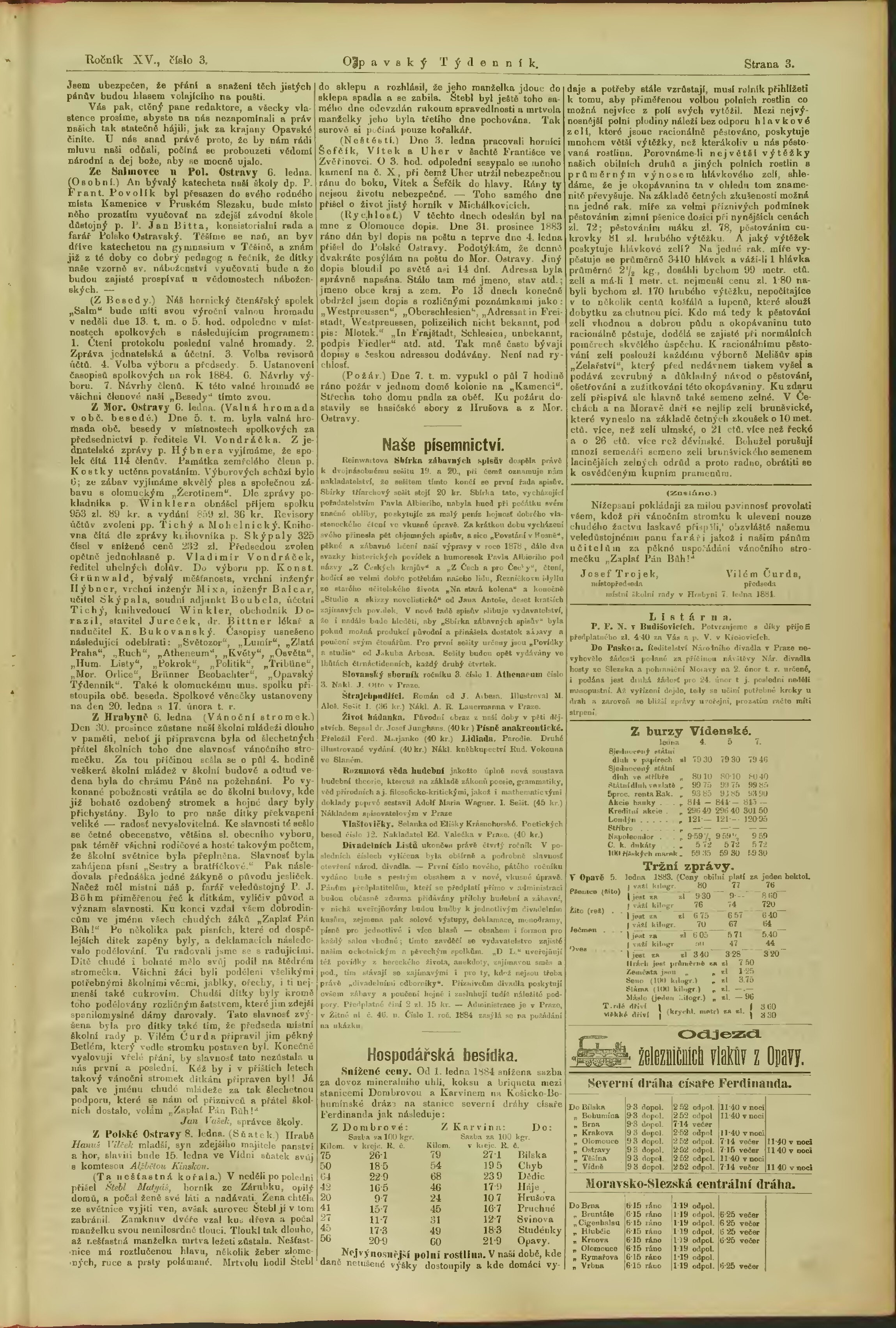 * Datum vydání ročníku: 1884 Číslo ročníku: 15
