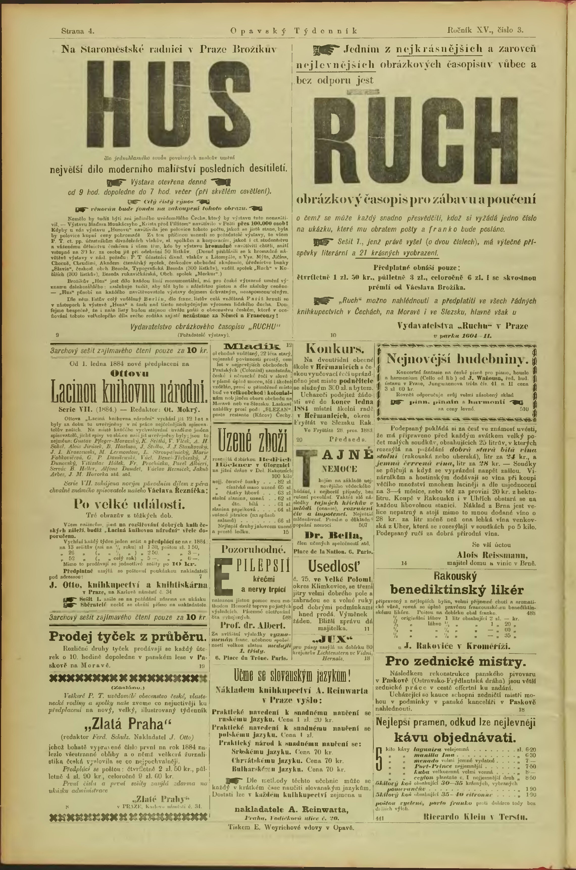* Datum vydání ročníku: 1884 Číslo ročníku: 15