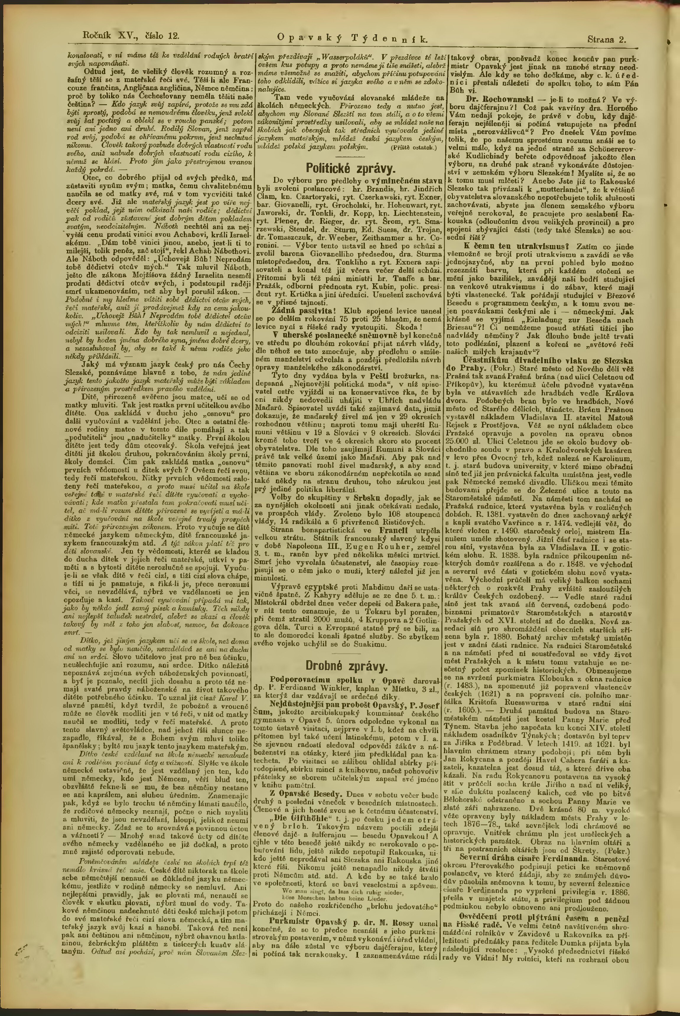 * Datum vydání ročníku: 1884 Číslo ročníku: 15