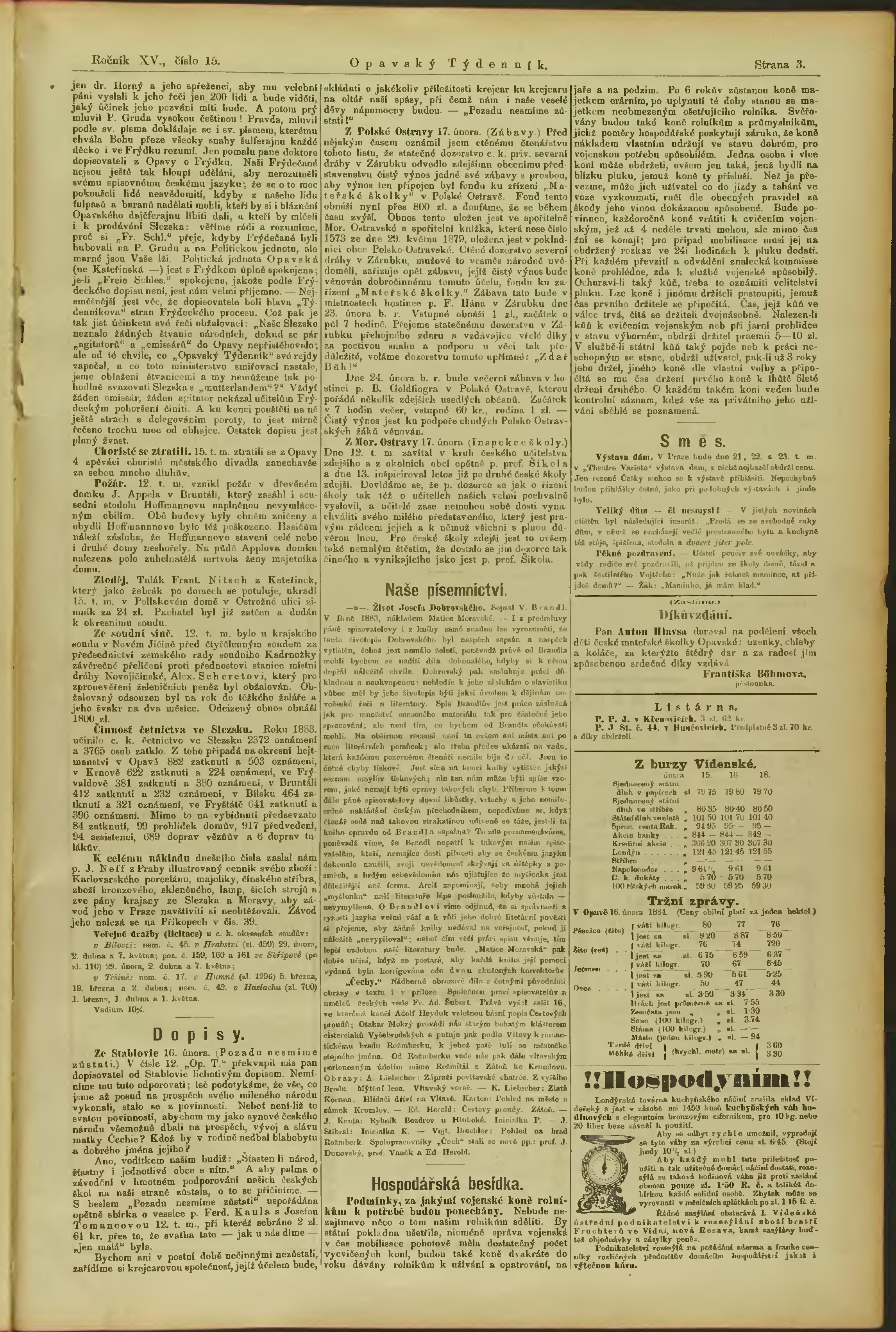 * Datum vydání ročníku: 1884 Číslo ročníku: 15
