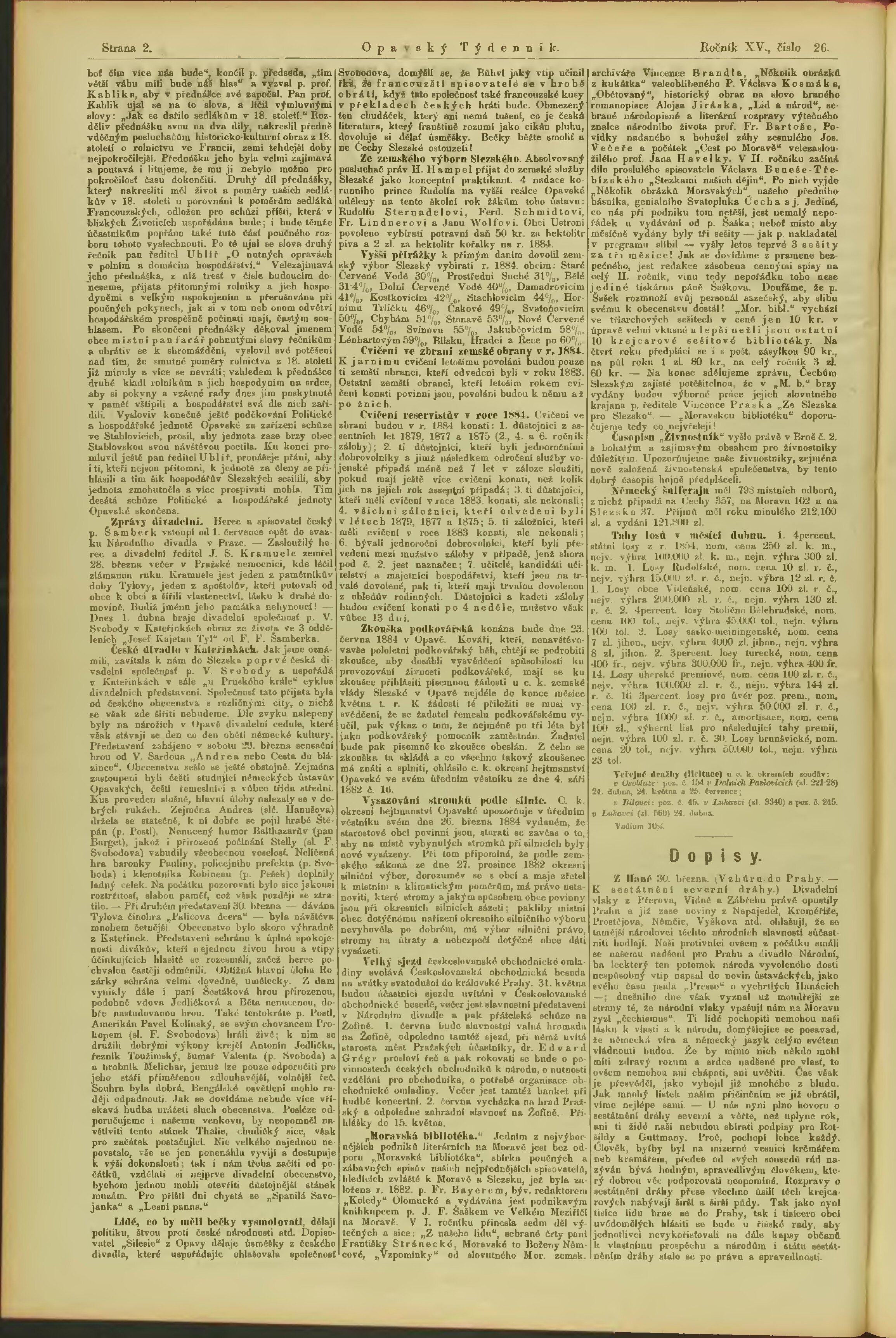 * Datum vydání výtisku: 2.4.1884 Číslo výtisku: 26