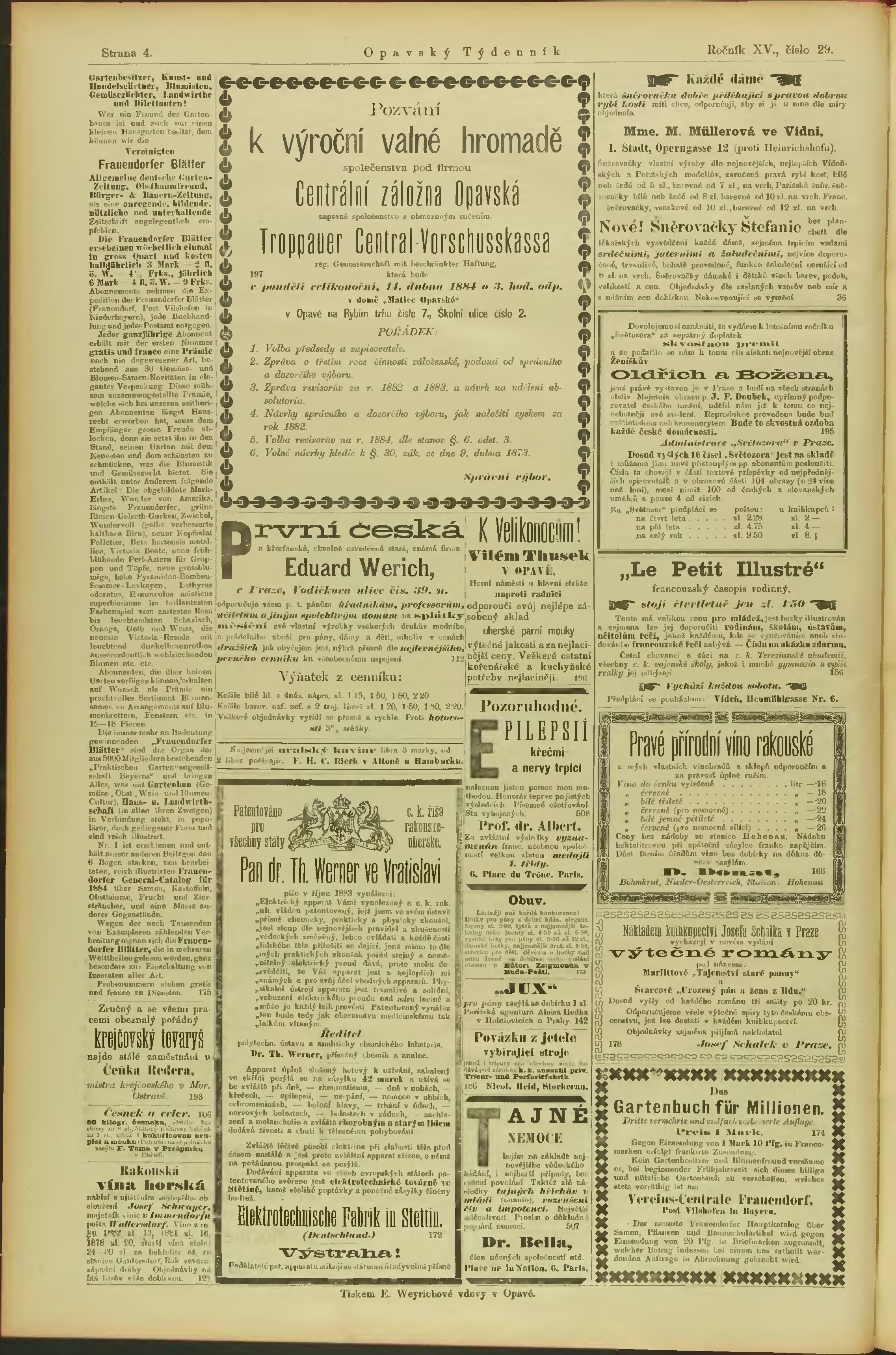 * Datum vydání výtisku: 9.4.1884 Číslo výtisku: 28