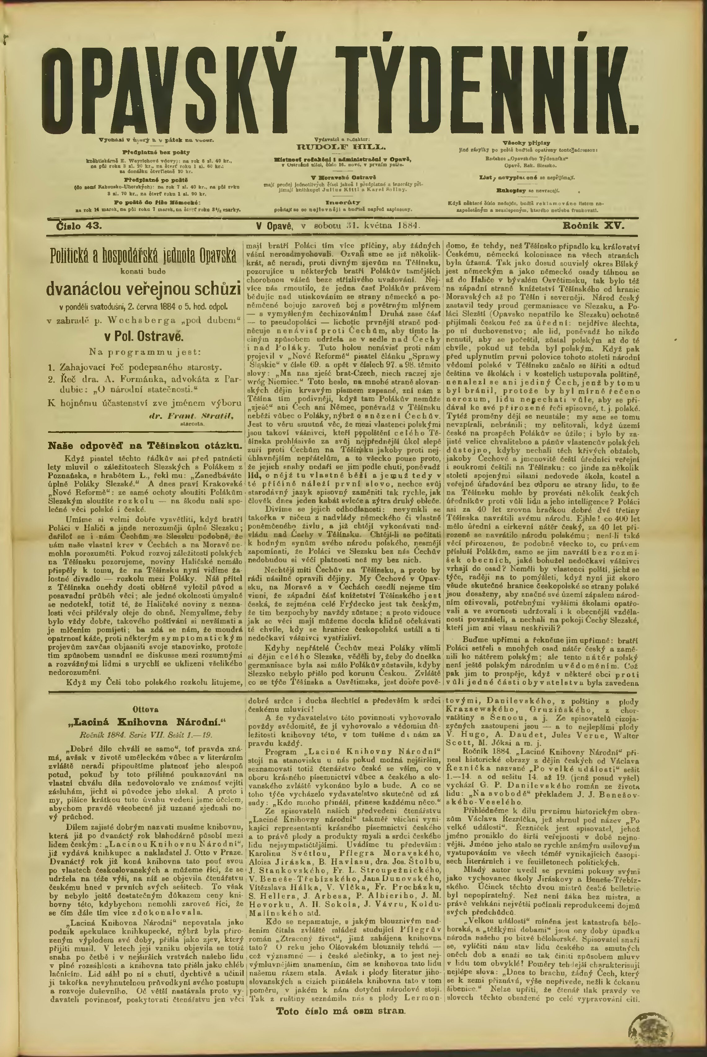 * Datum vydání výtisku: 31.5.1884 Číslo výtisku: 43