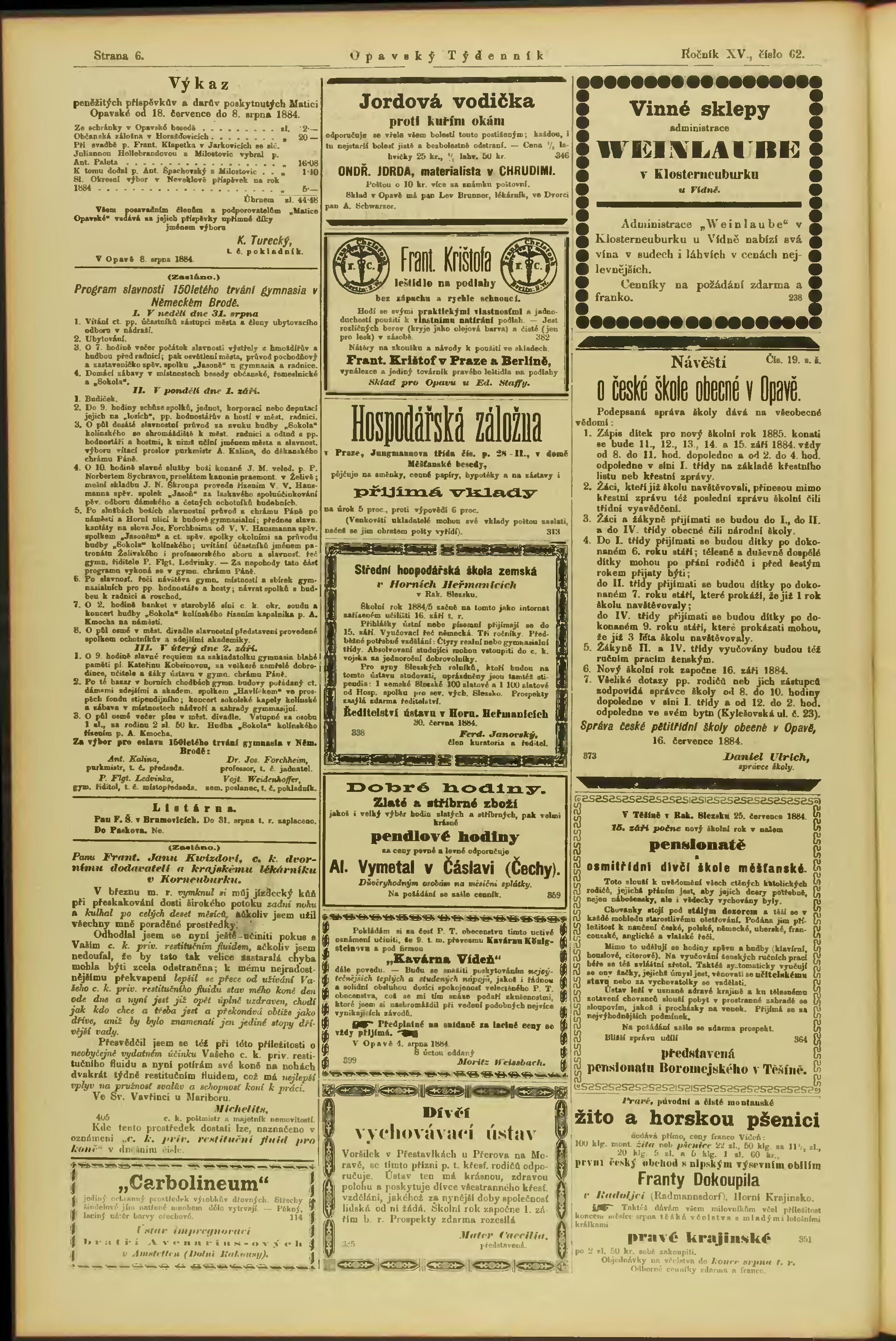 * Datum vydání ročníku: 1884 Číslo ročníku: 15