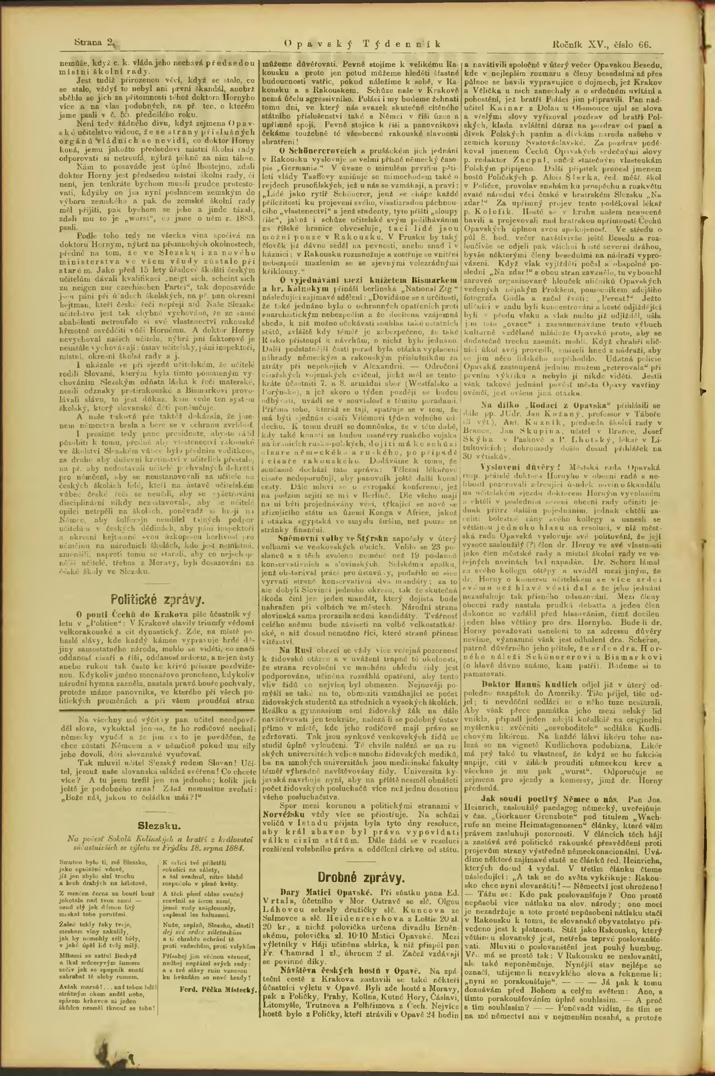 * Datum vydání výtisku: 23.8.1884 Číslo výtisku: 66