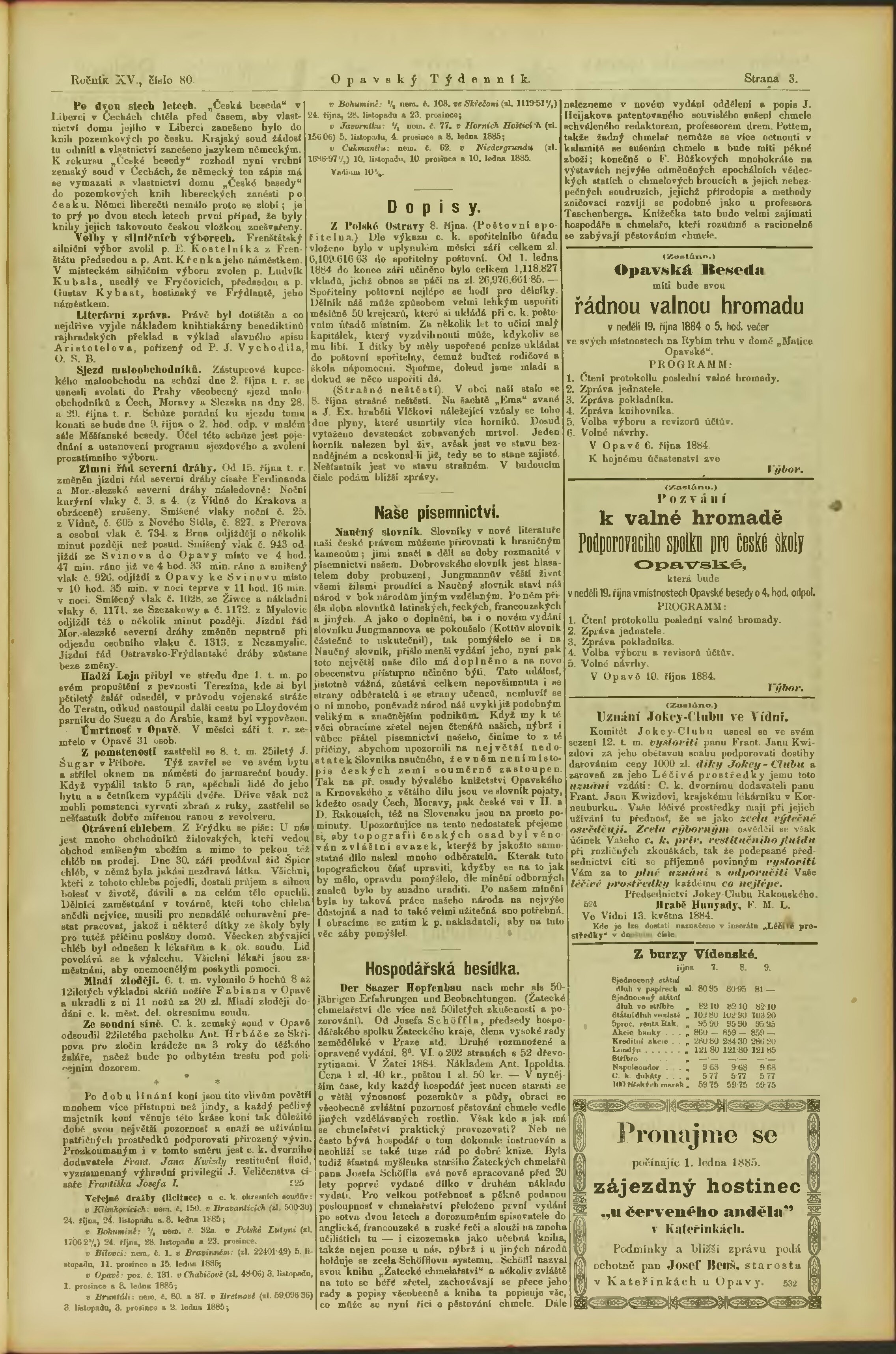 * Datum vydání výtisku: 11.10.1884 Číslo výtisku: 80