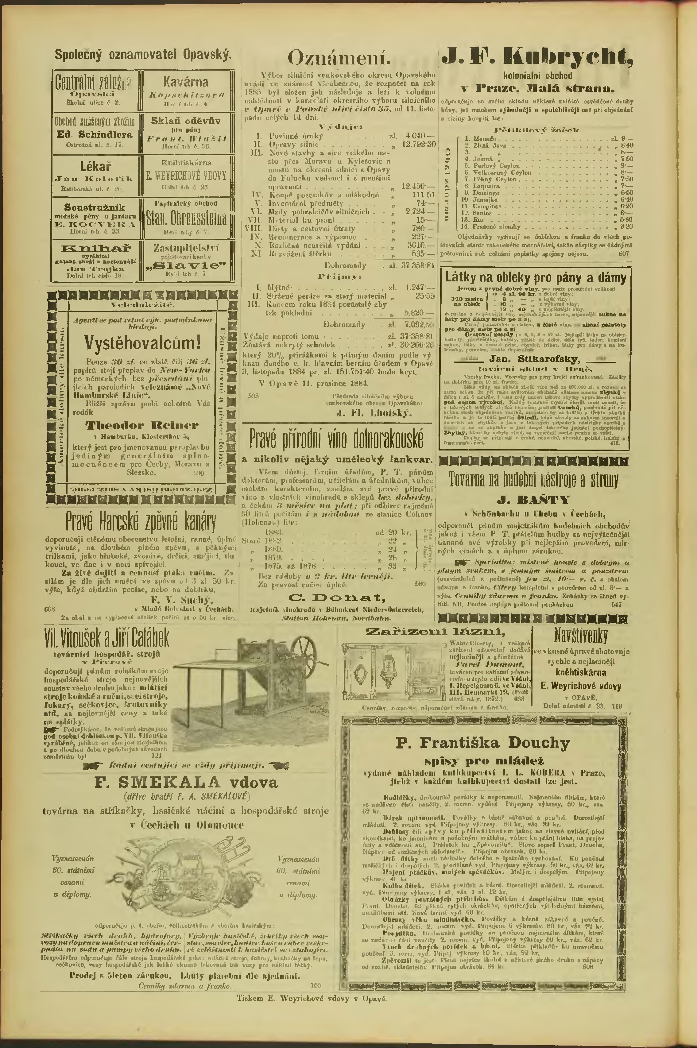 * Datum vydání výtisku: 15.11.1884 Číslo výtisku: 90 Typ výtisku: příloha