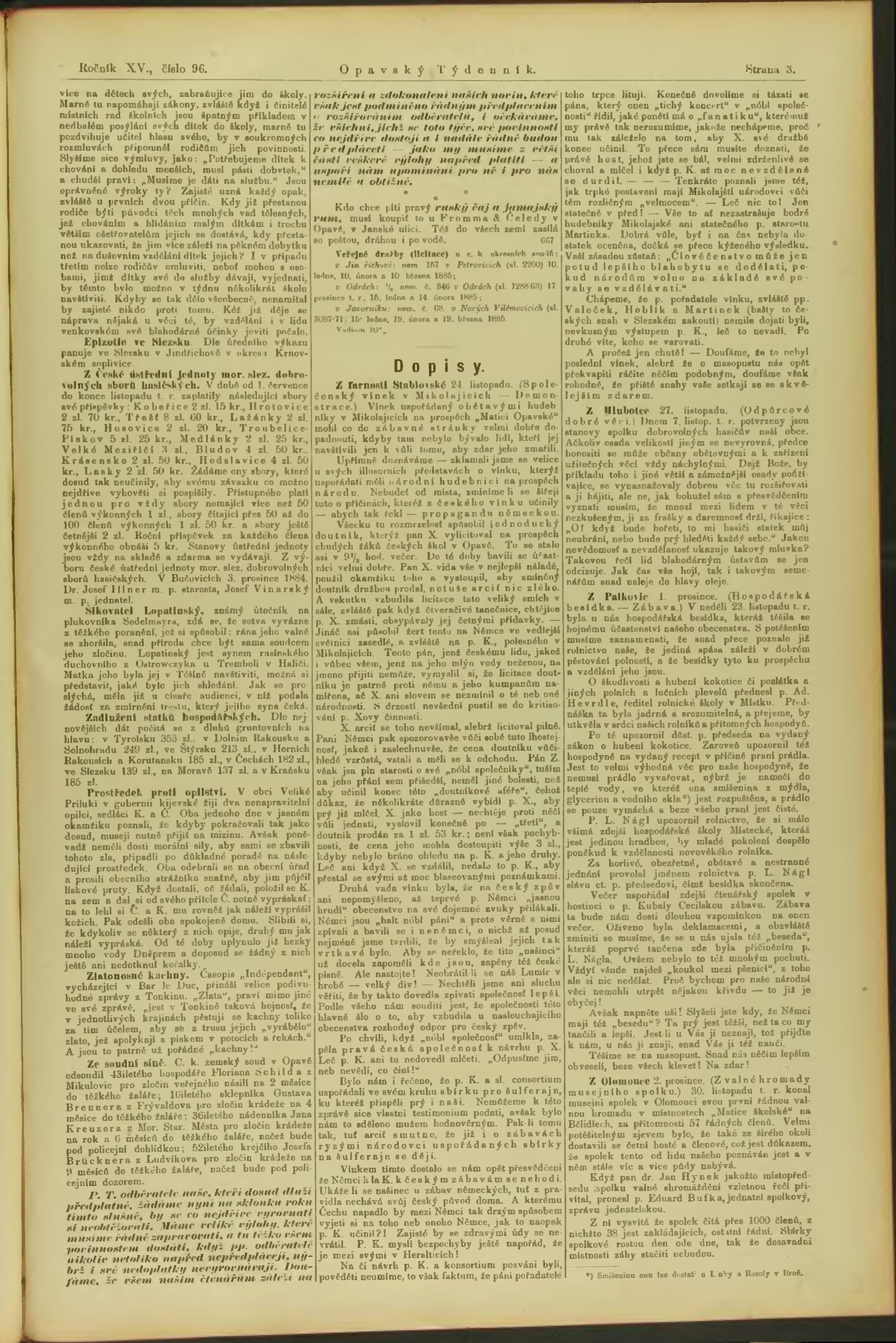 * Datum vydání výtisku: 6.12.1884 Číslo výtisku: 96