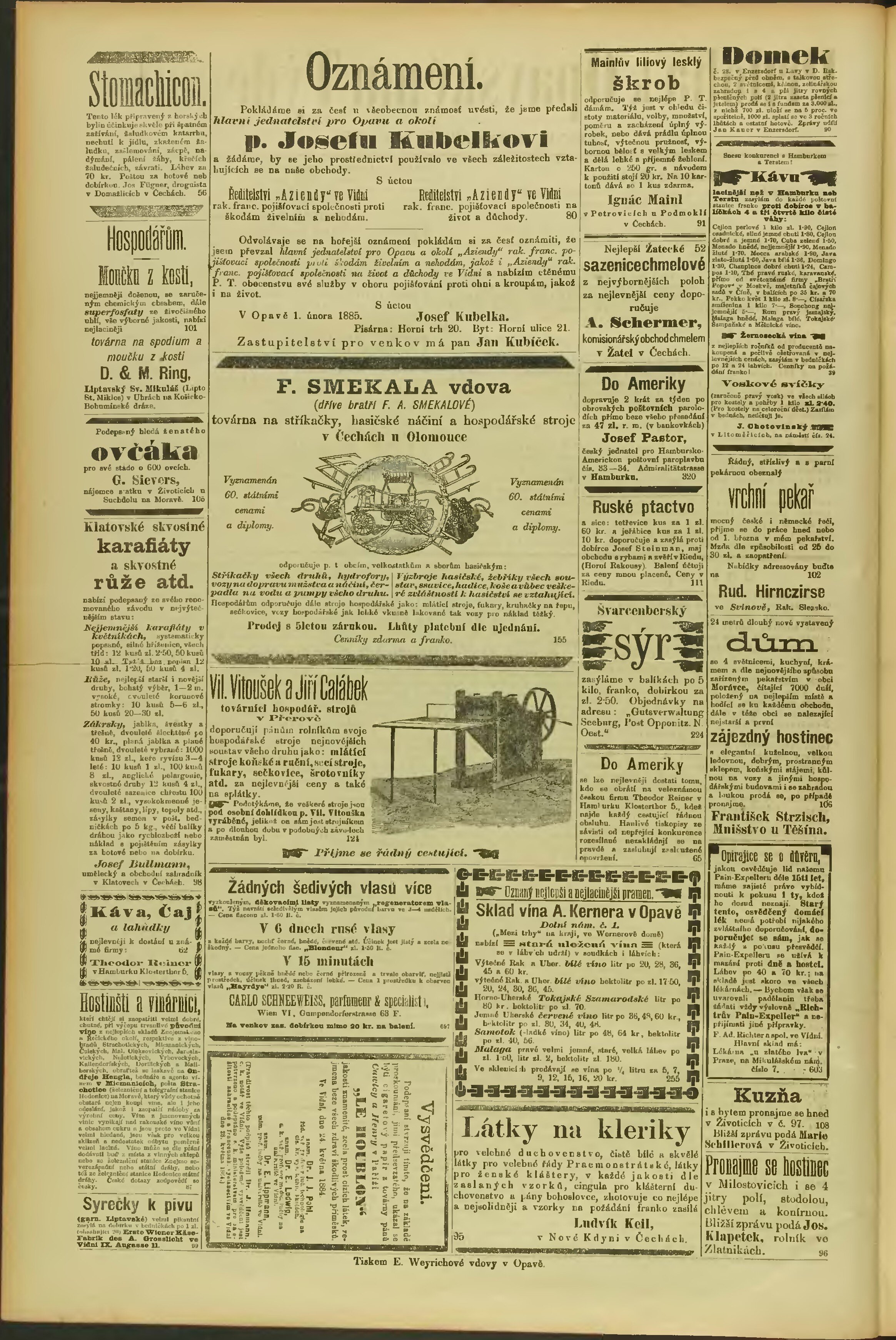 * Datum vydání výtisku: 21.2.1885 Číslo výtisku: 15 Typ výtisku: příloha