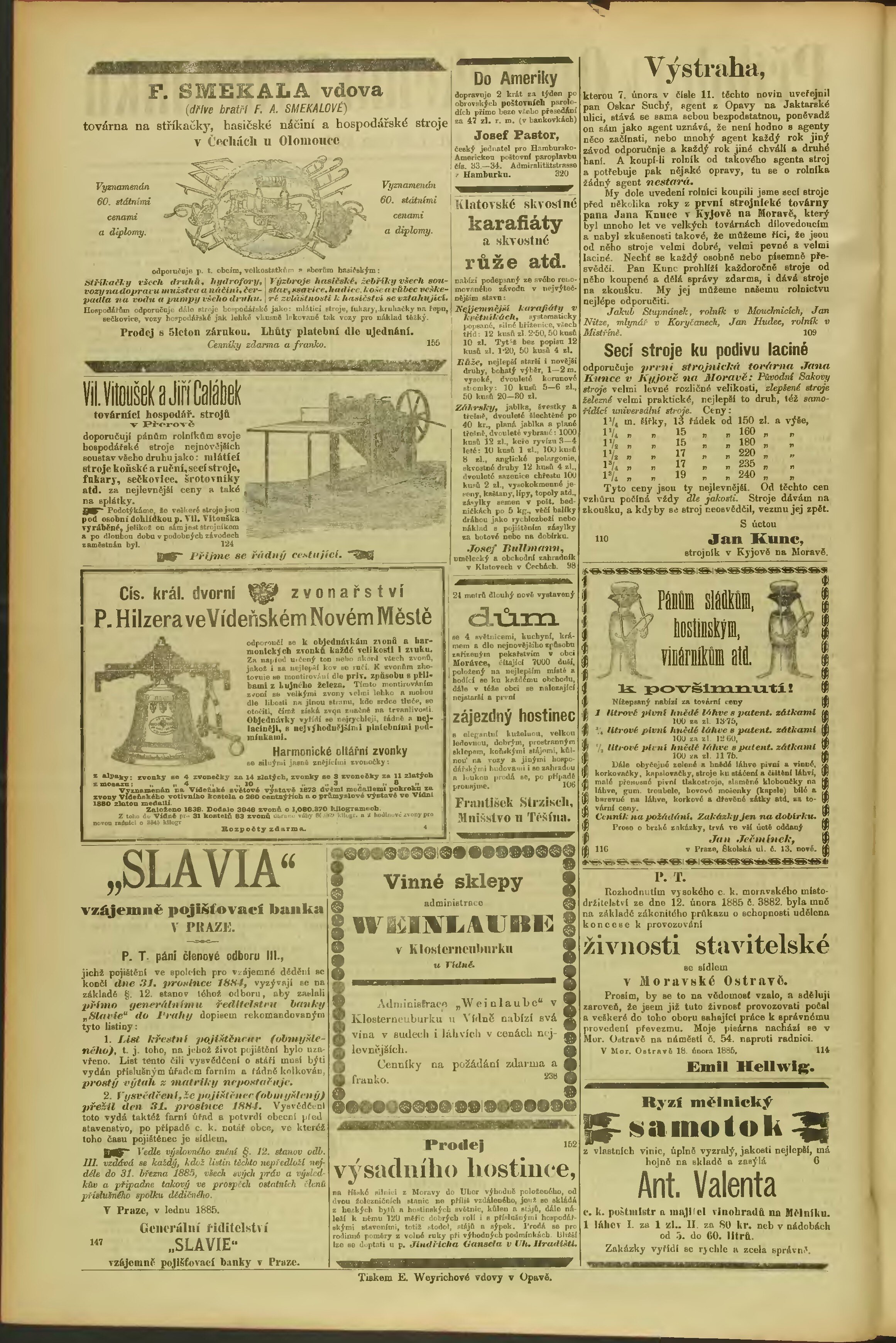 * Datum vydání výtisku: 7.3.1885 Číslo výtisku: 19 Typ výtisku: příloha