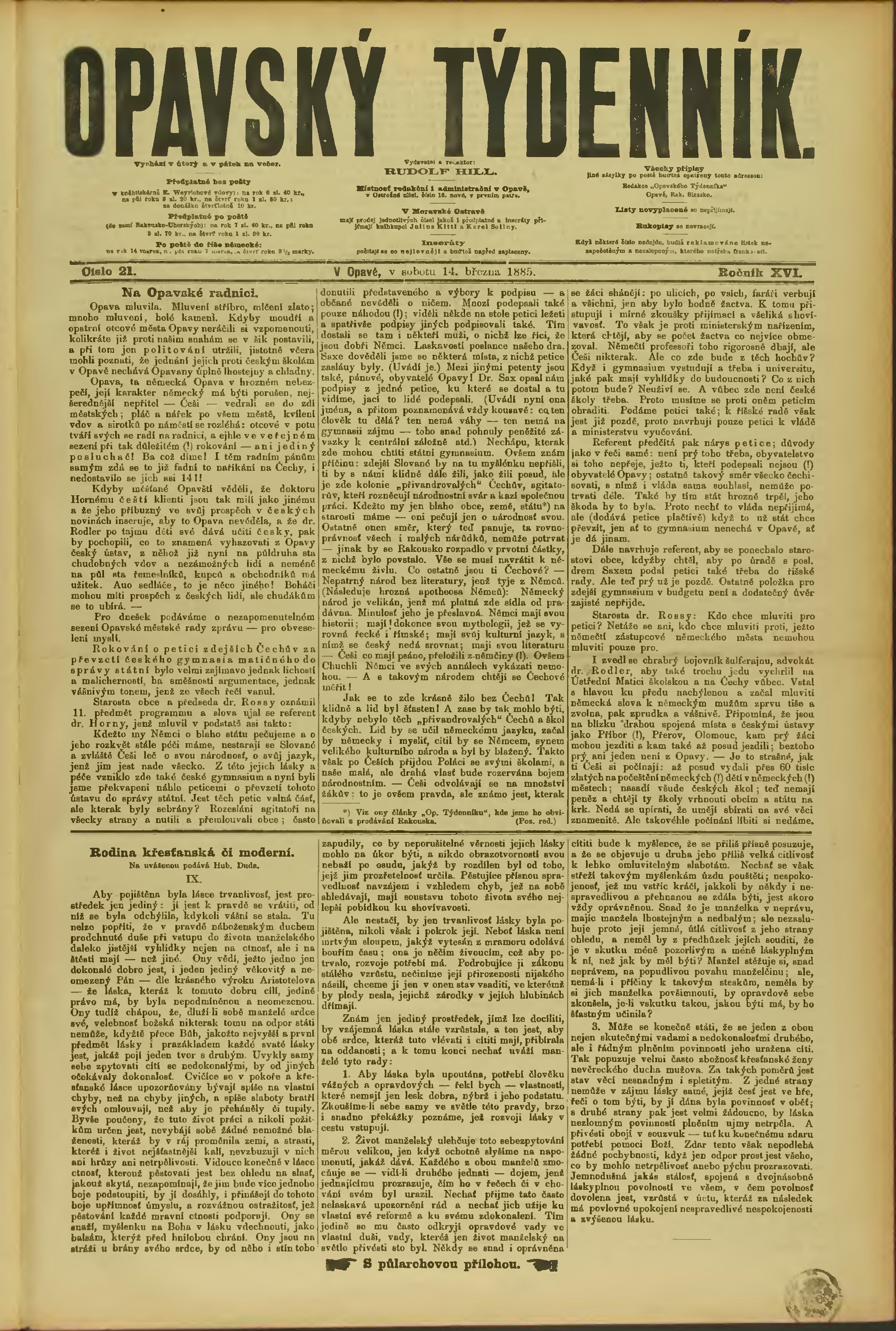 * Datum vydání výtisku: 14.3.1885 Číslo výtisku: 21