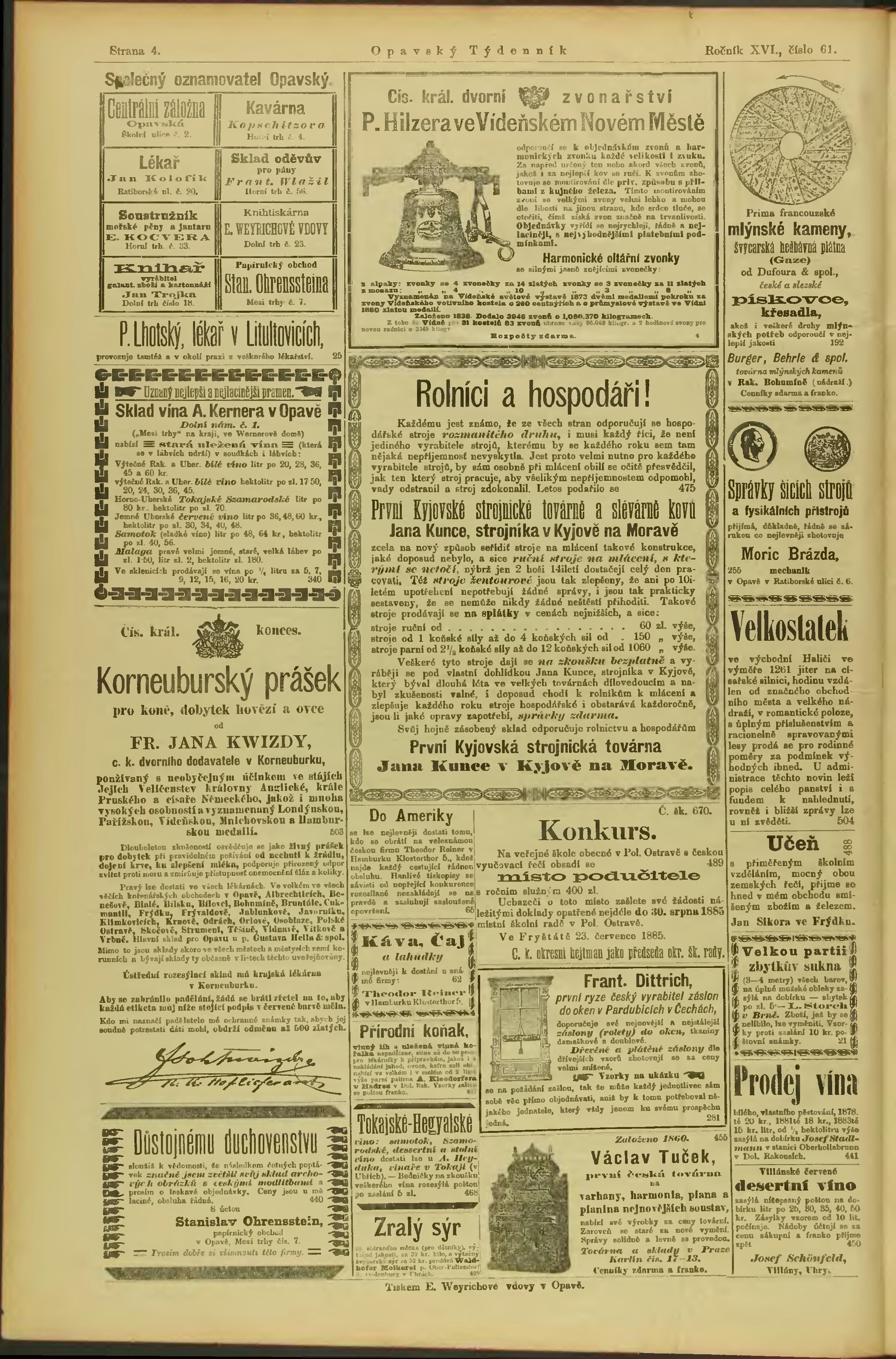 * Datum vydání výtisku: 8.8.1885 Číslo výtisku: 61