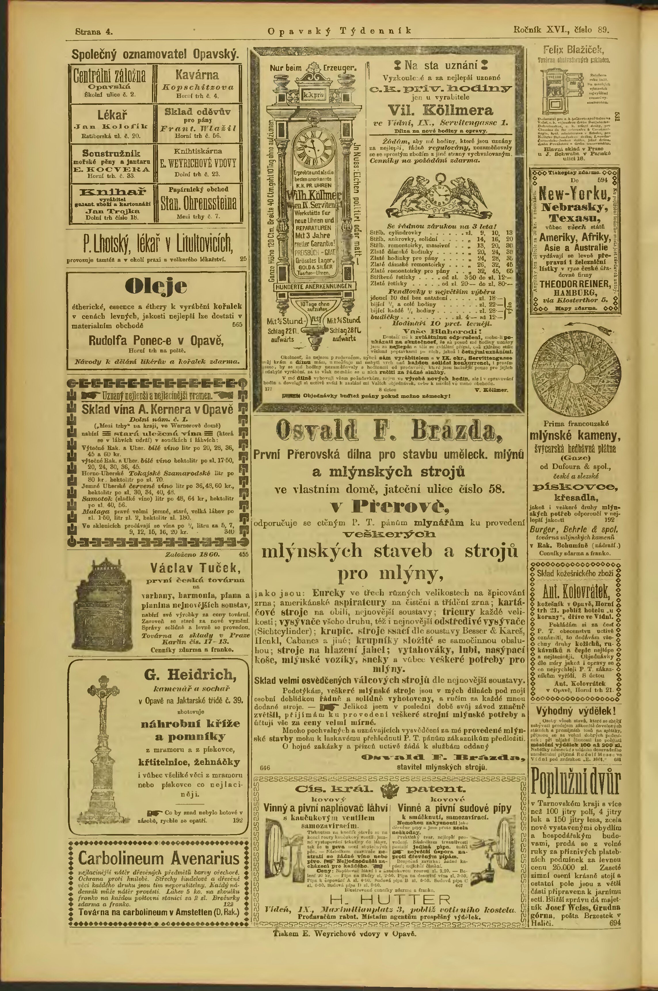* Datum vydání výtisku: 14.11.1885 Číslo výtisku: 89