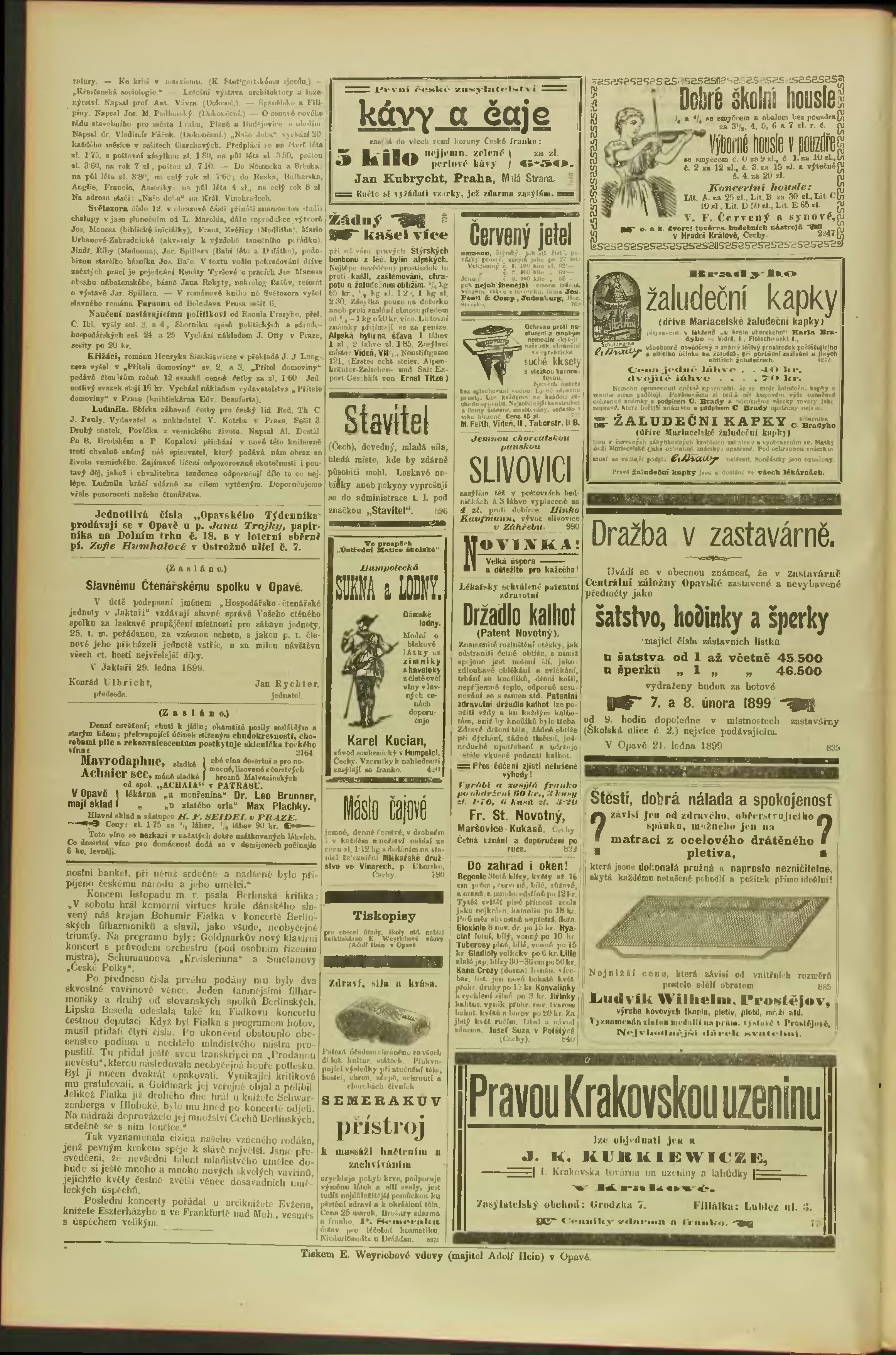 * Datum vydání výtisku: 1.2.1899 Číslo výtisku: 9 Typ výtisku: příloha