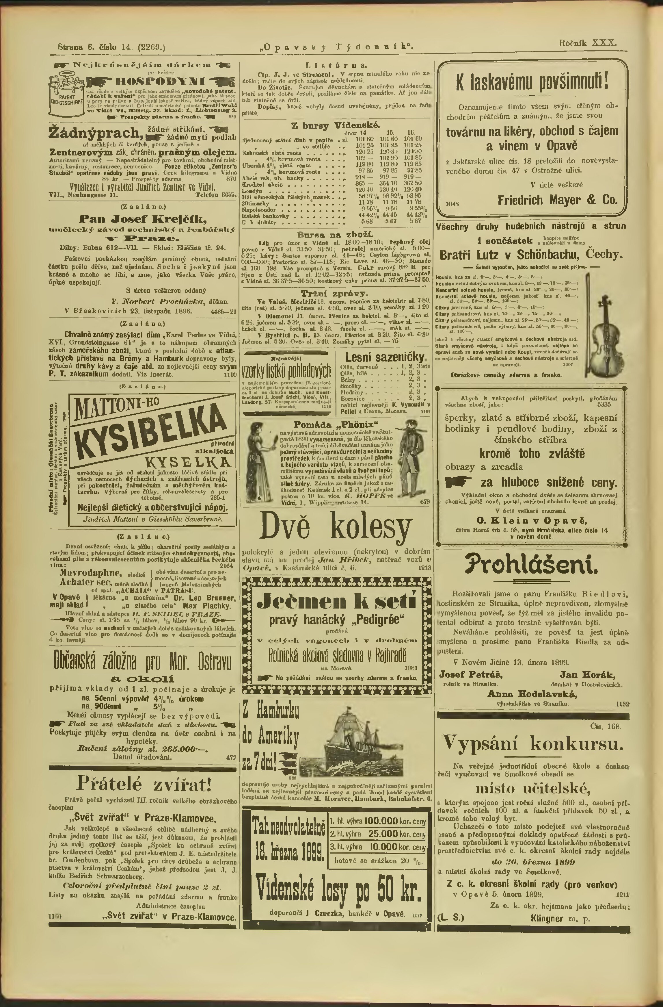 * Datum vydání výtisku: 18.2.1899 Číslo výtisku: 14