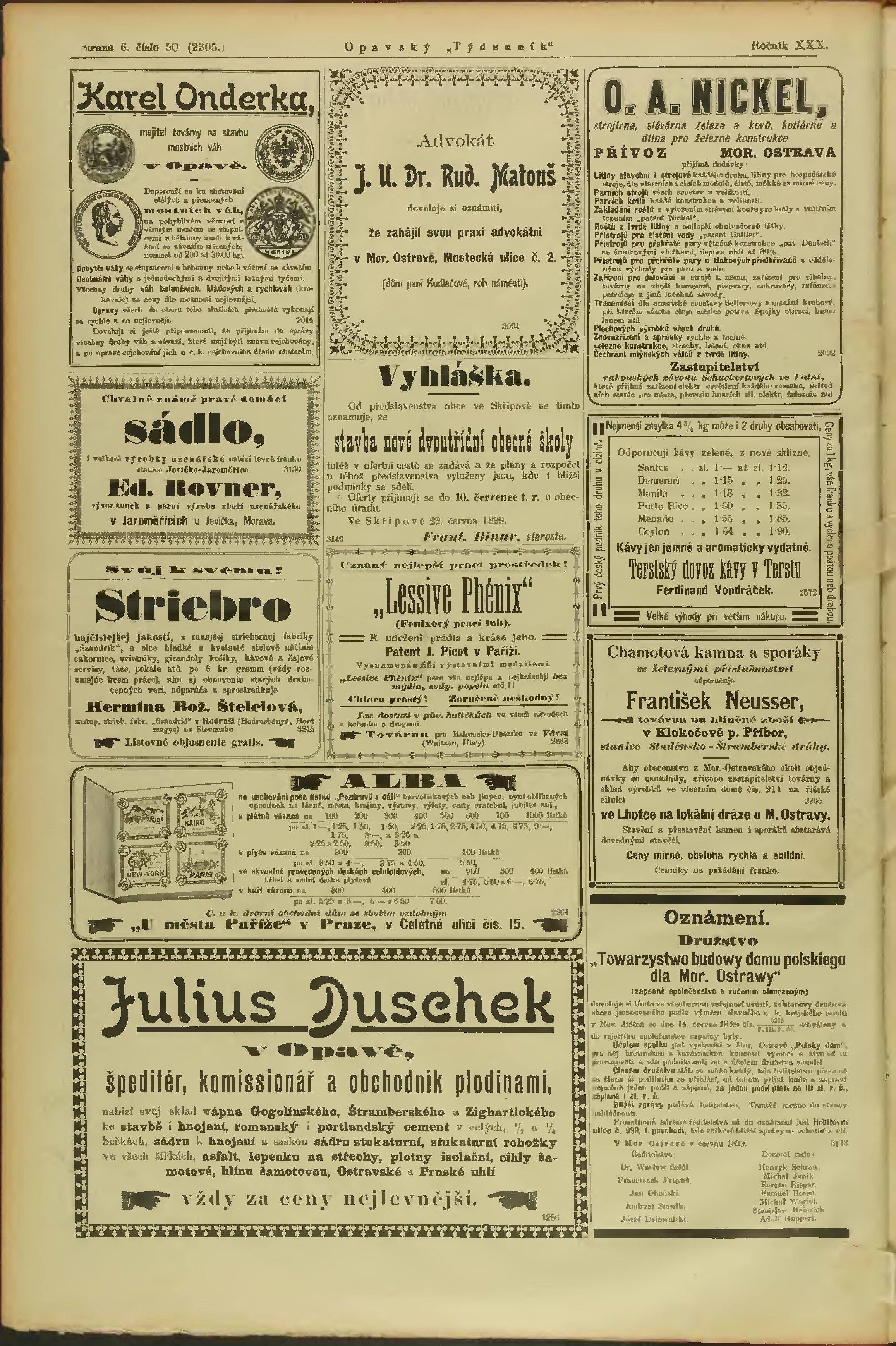 * Datum vydání ročníku: 1899 Číslo ročníku: 30