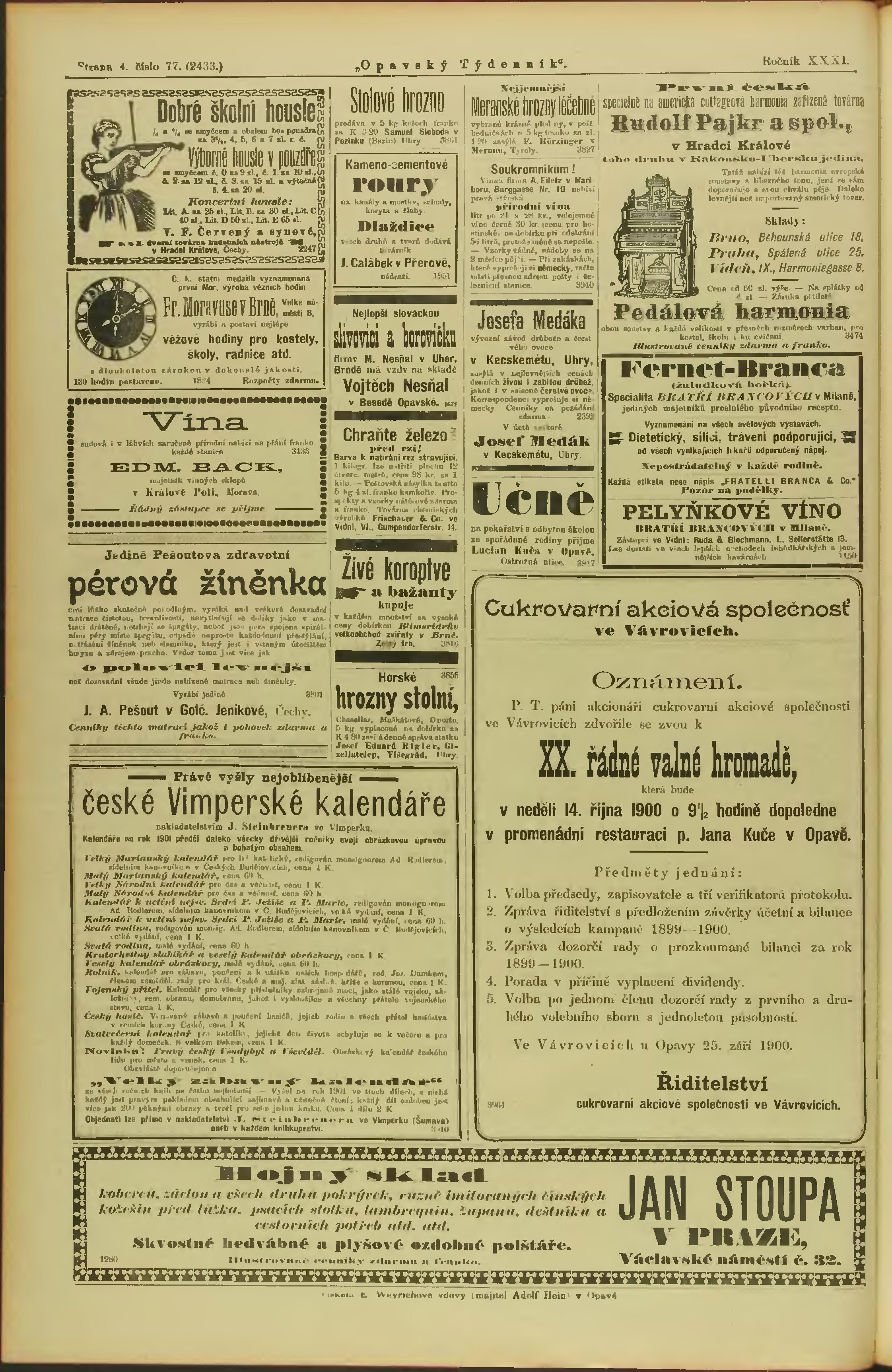 * Datum vydání výtisku: 3.10.1900 Číslo výtisku: 77