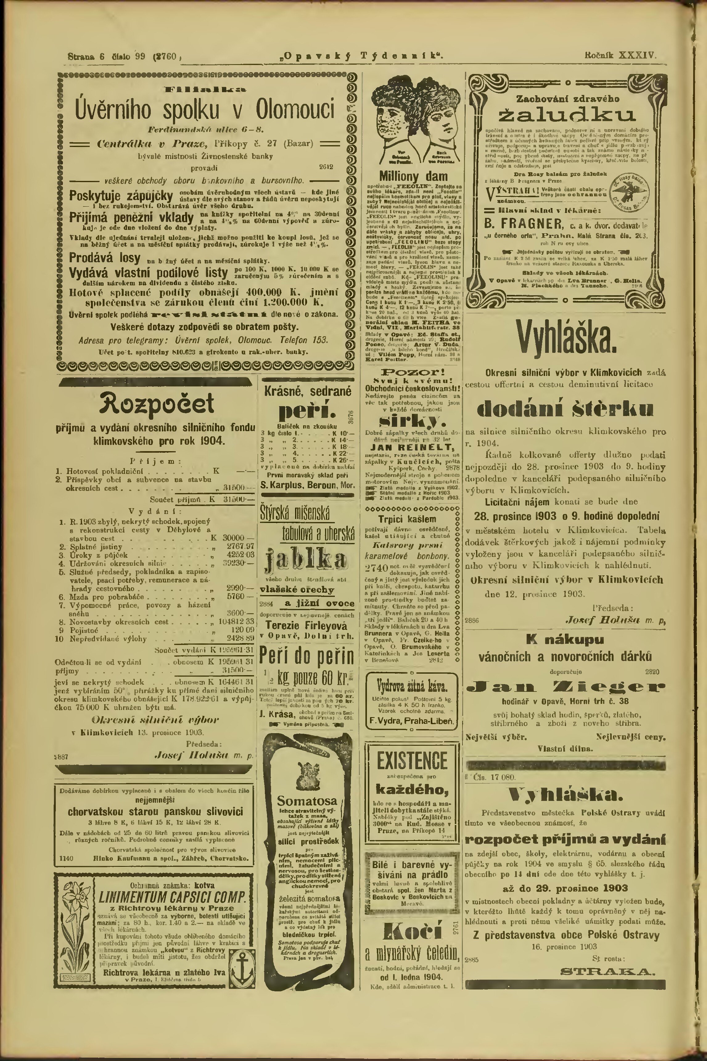 * Datum vydání ročníku: 1903 Číslo ročníku: 34