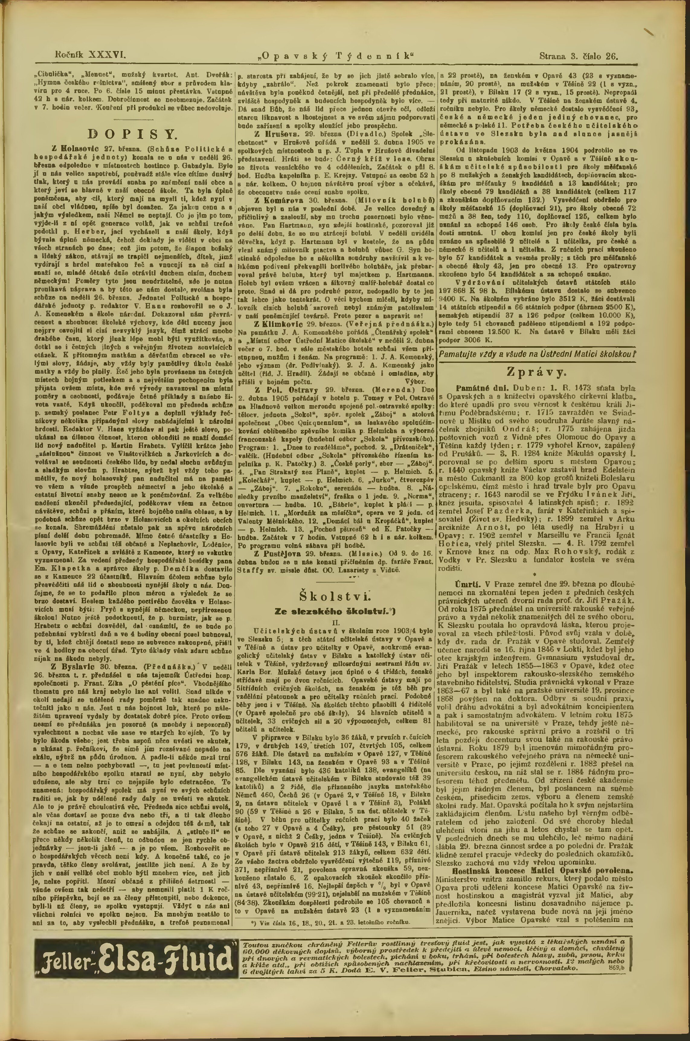 * Datum vydání výtisku: 1.4.1905 Číslo výtisku: 26