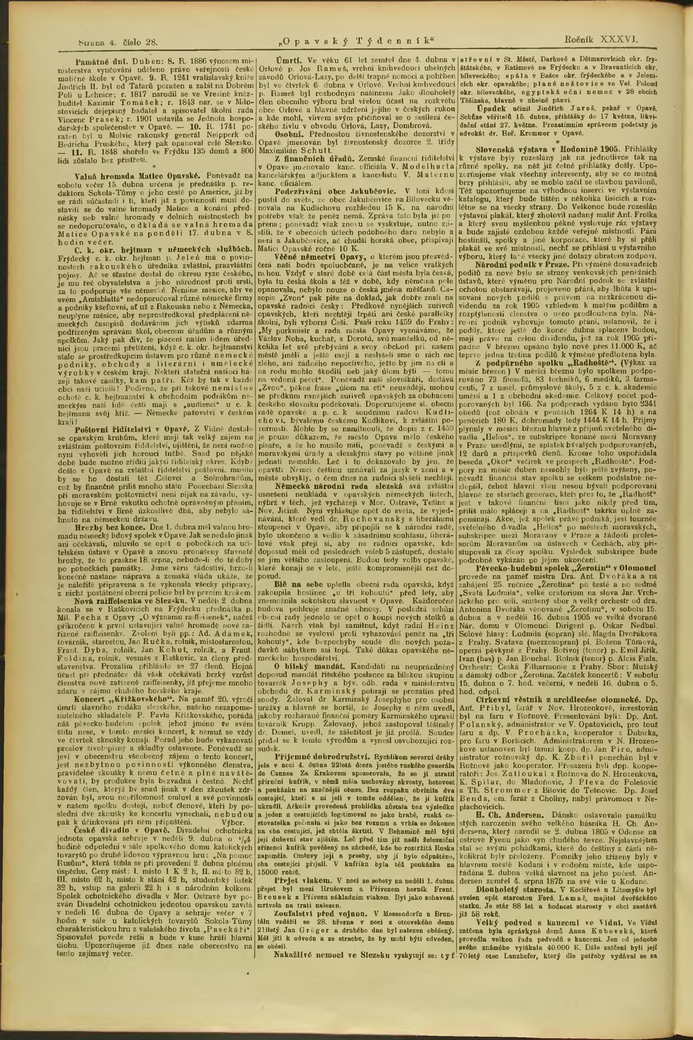 * Datum vydání výtisku: 8.4.1905 Číslo výtisku: 28