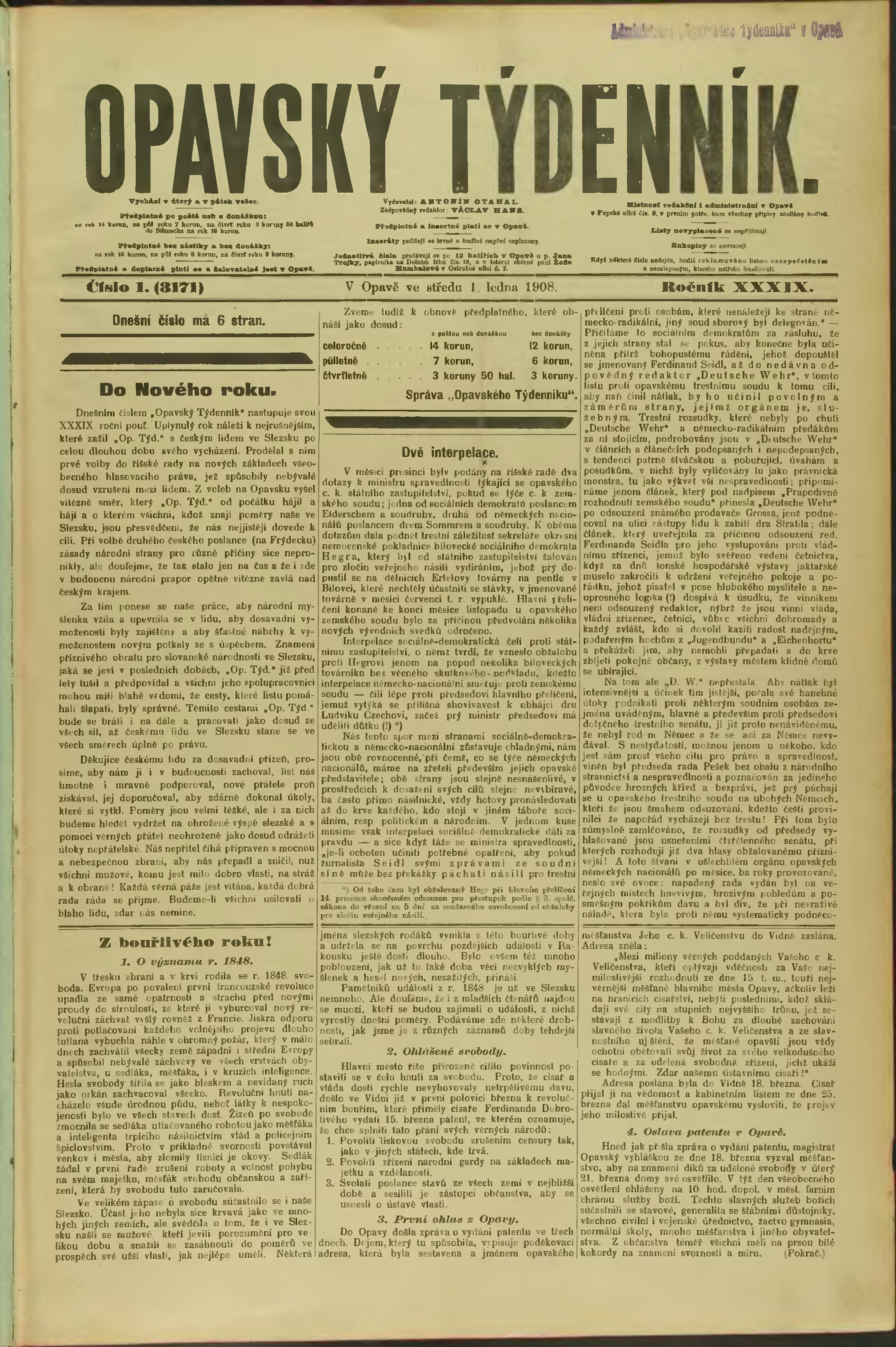 * Datum vydání ročníku: 1908 Číslo ročníku: 39