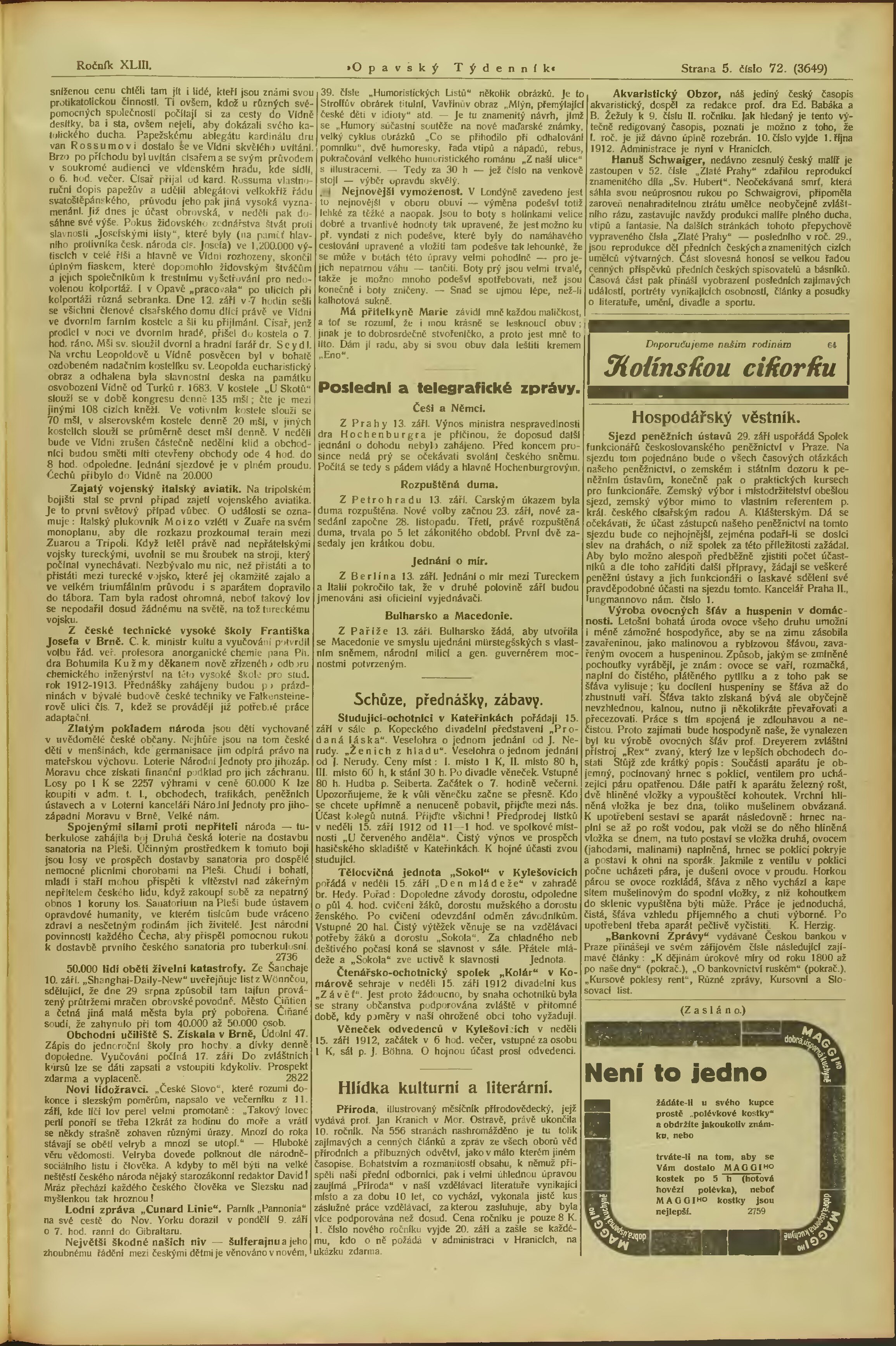 * Datum vydání výtisku: 14.9.1912 Číslo výtisku: 72