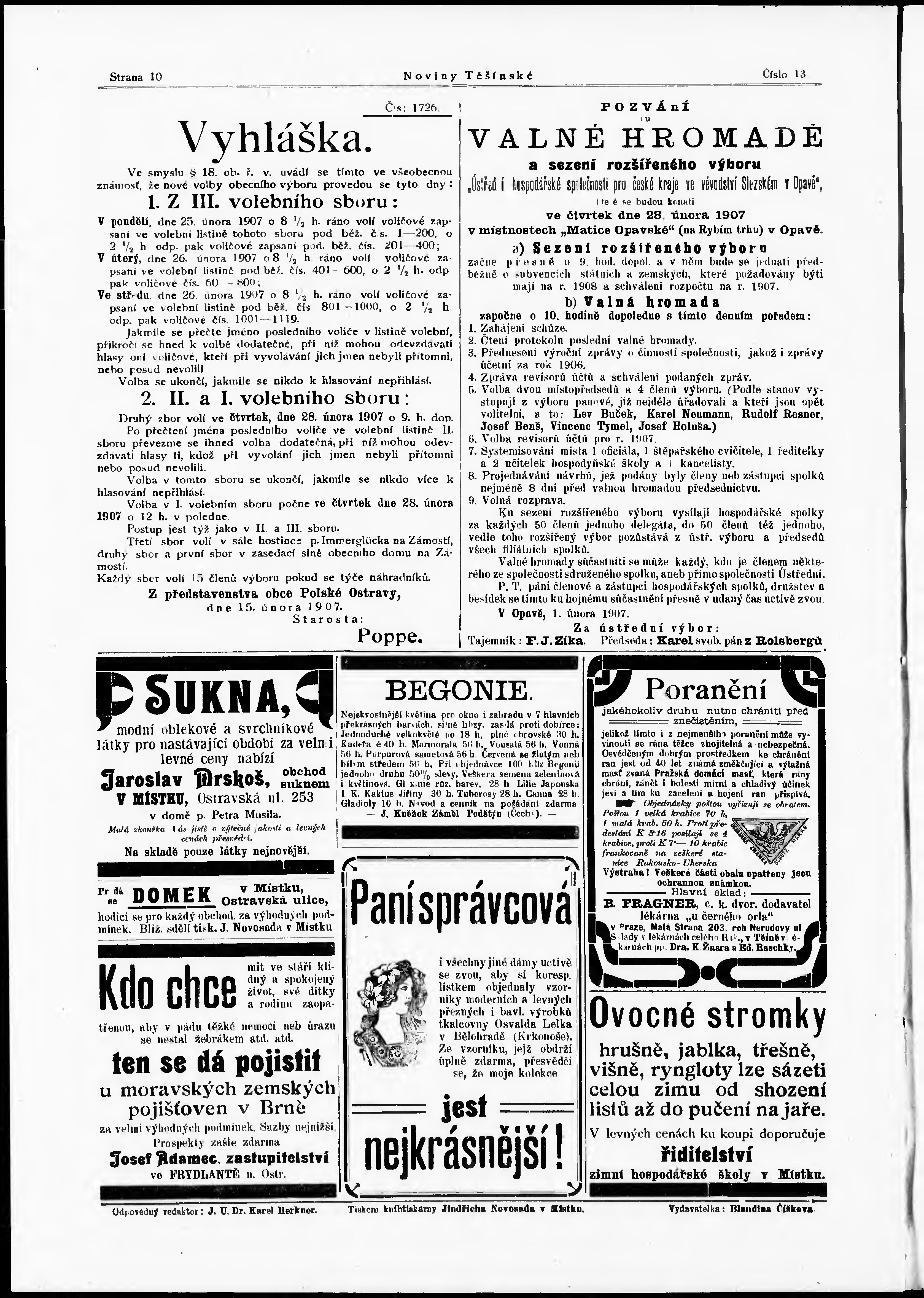 * Datum vydání výtisku: 23.2.1907 Číslo výtisku: 13