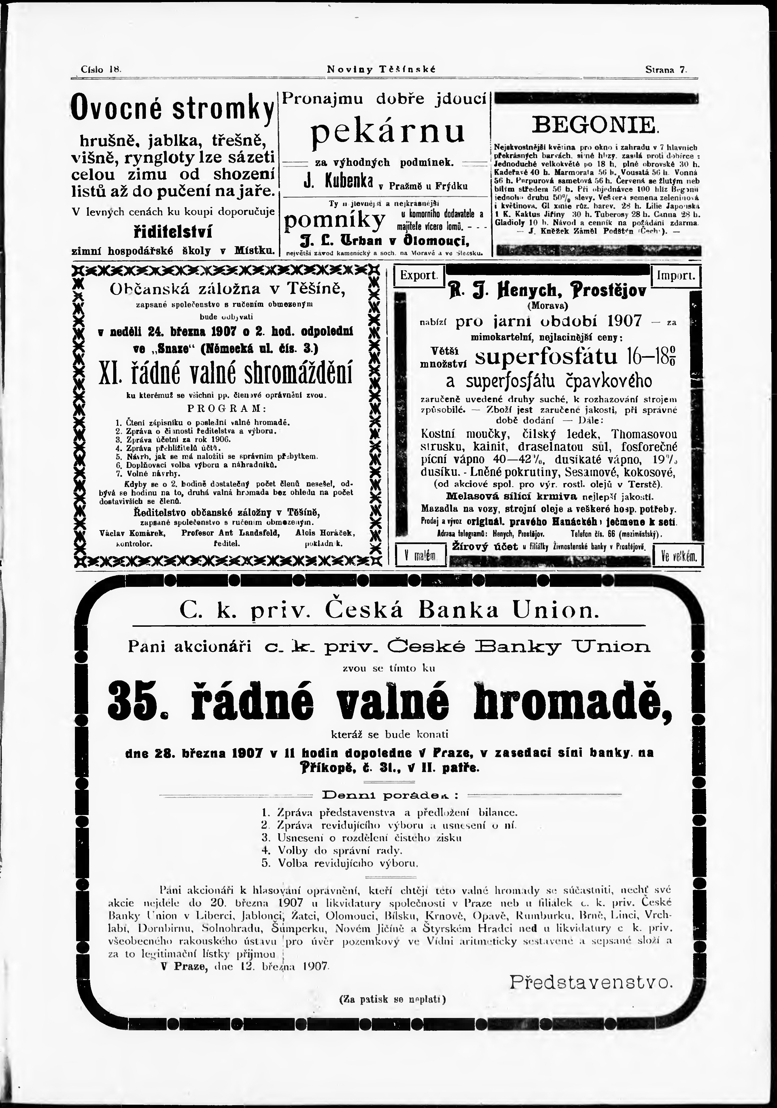 * Datum vydání výtisku: 16.3.1907 Číslo výtisku: 18