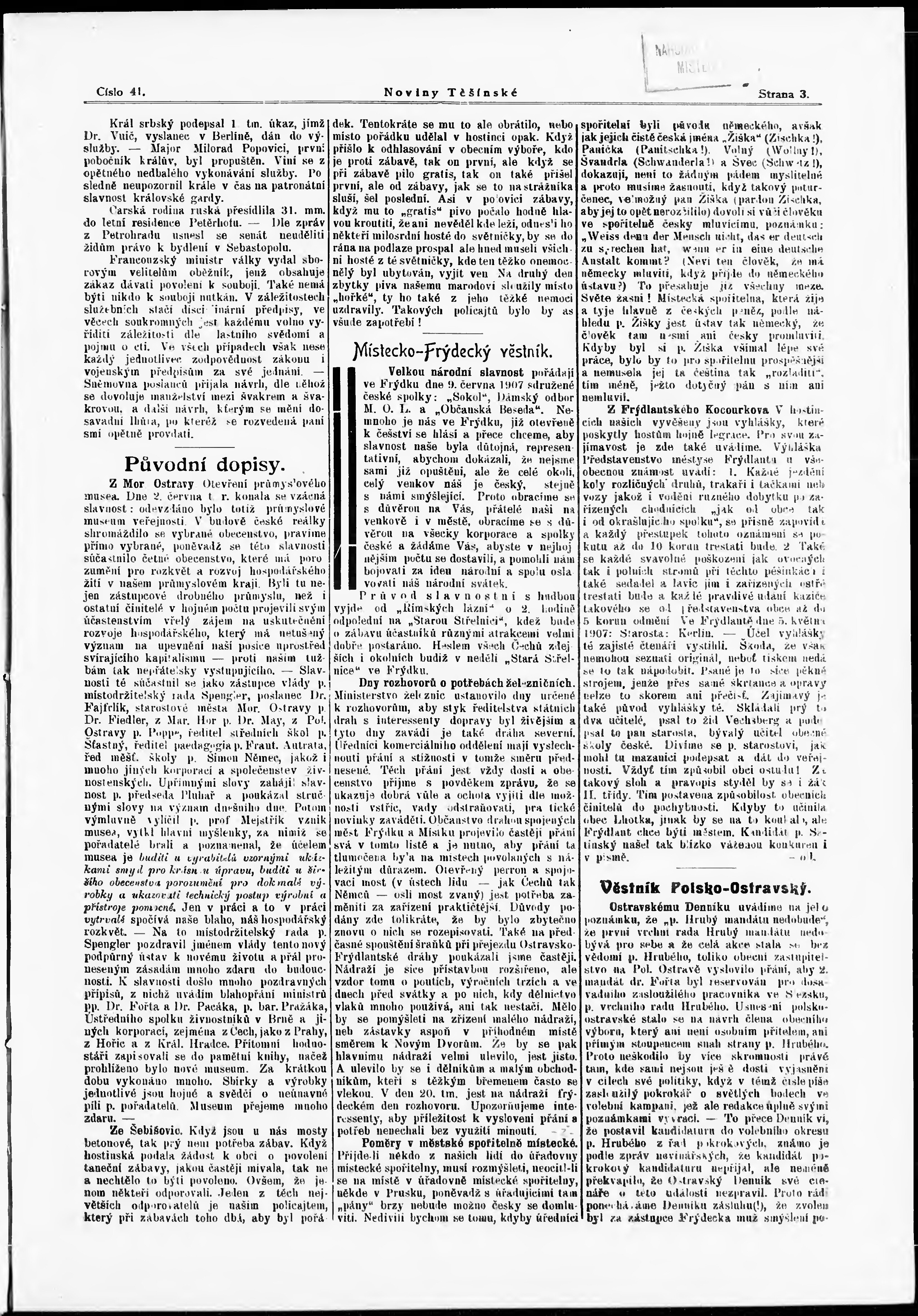 * Datum vydání výtisku: 5.6.1907 Číslo výtisku: 41
