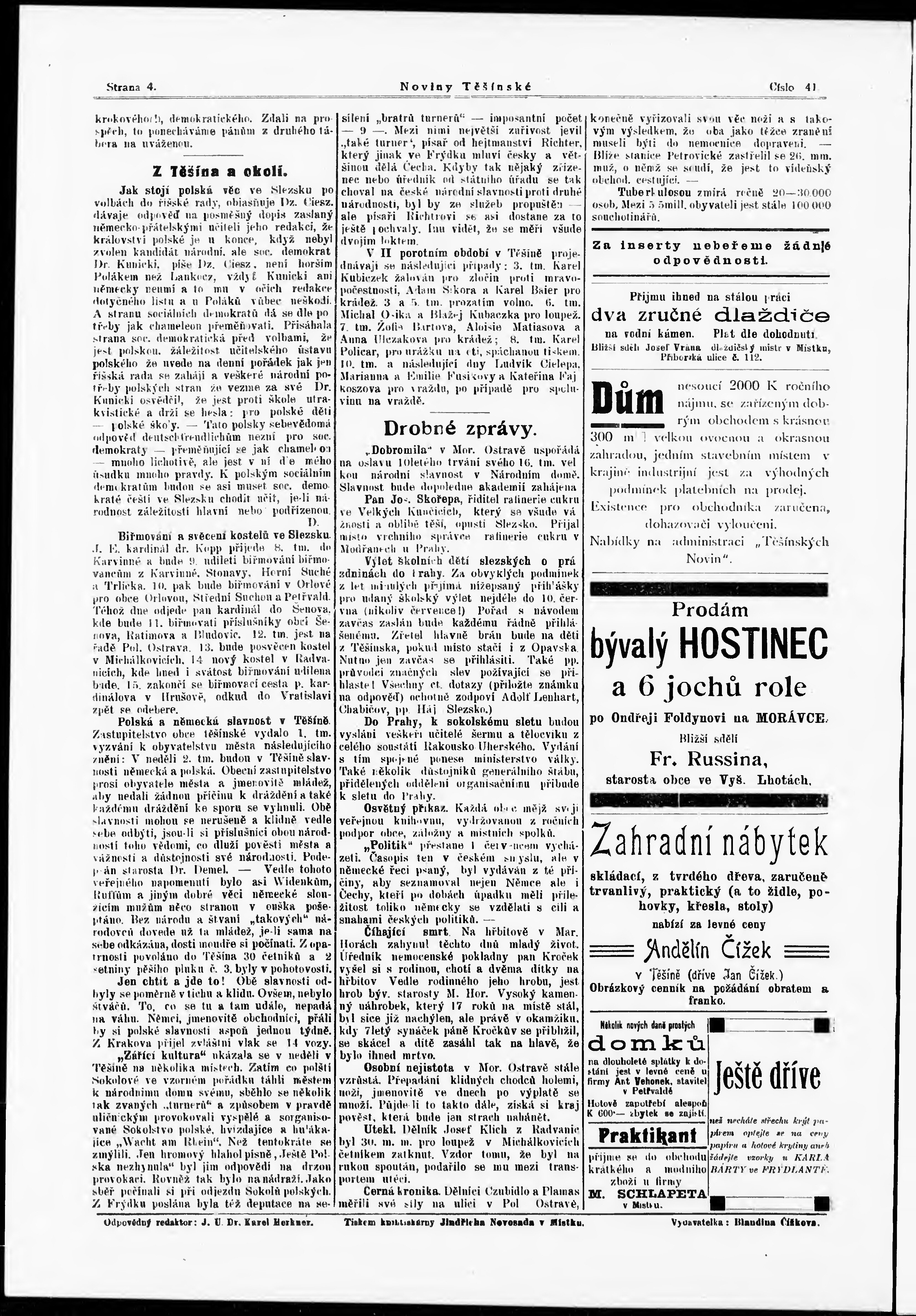 * Datum vydání výtisku: 5.6.1907 Číslo výtisku: 41