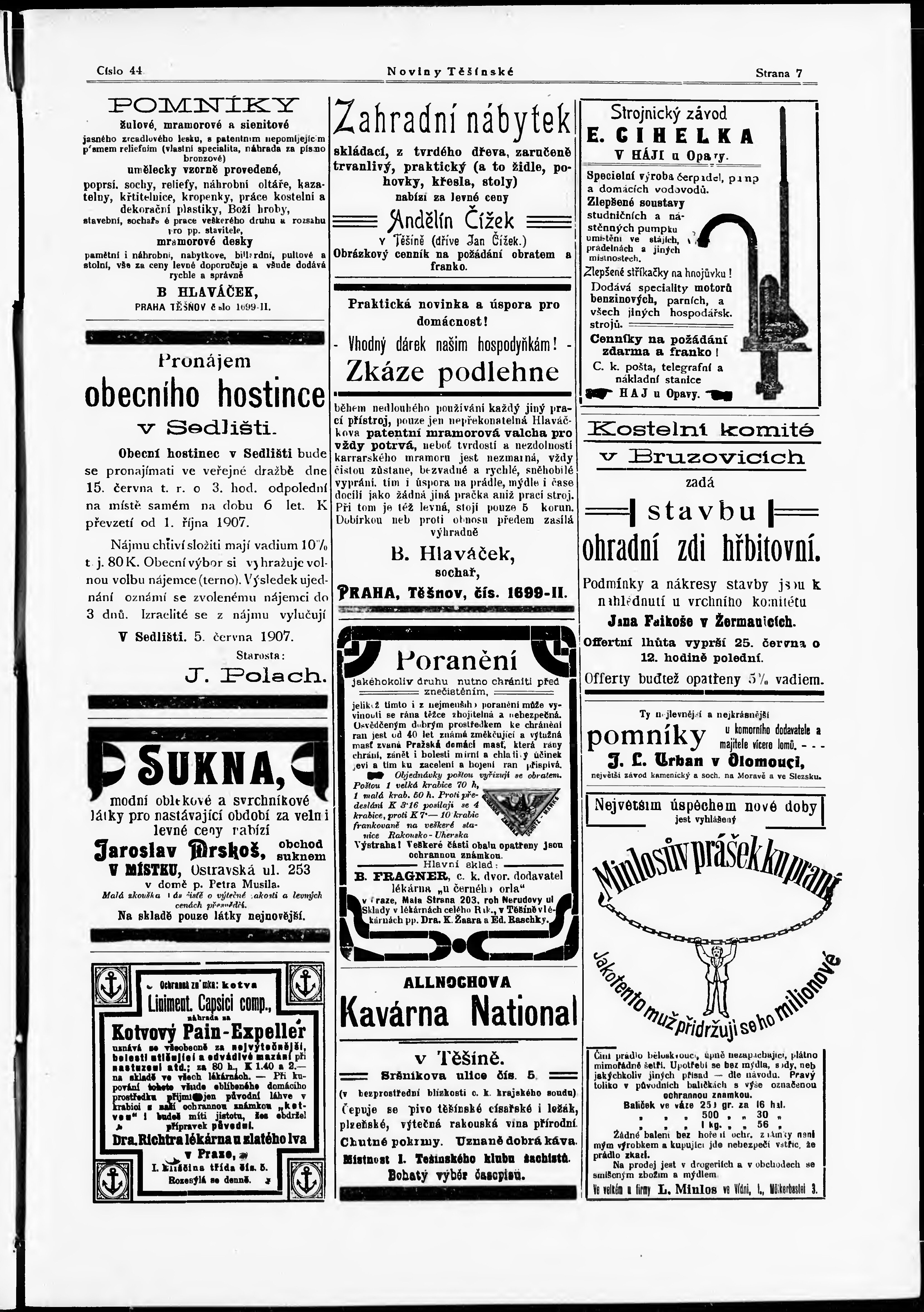 * Datum vydání výtisku: 15.6.1907 Číslo výtisku: 44