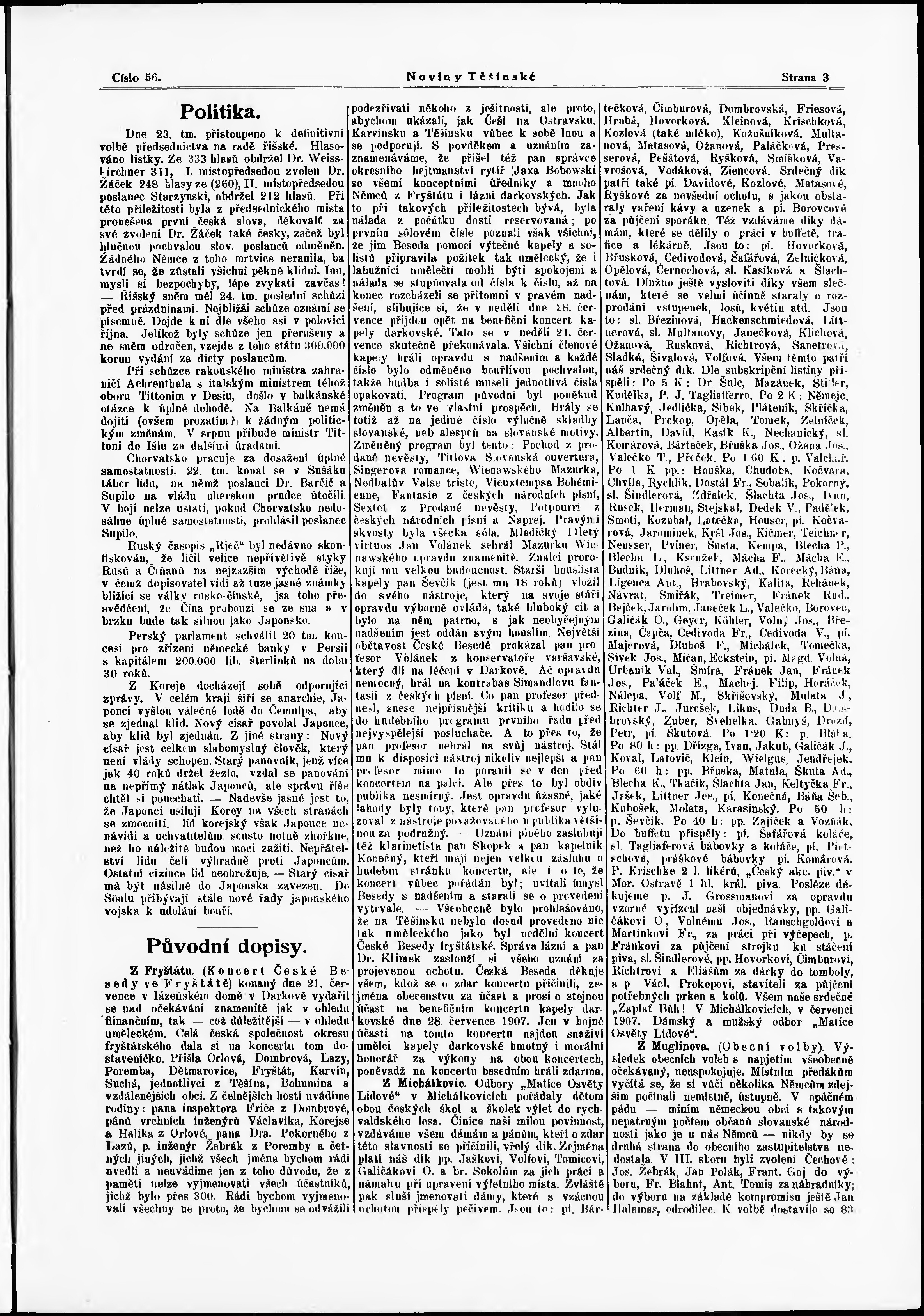 * Datum vydání výtisku: 27.7.1907 Číslo výtisku: 56