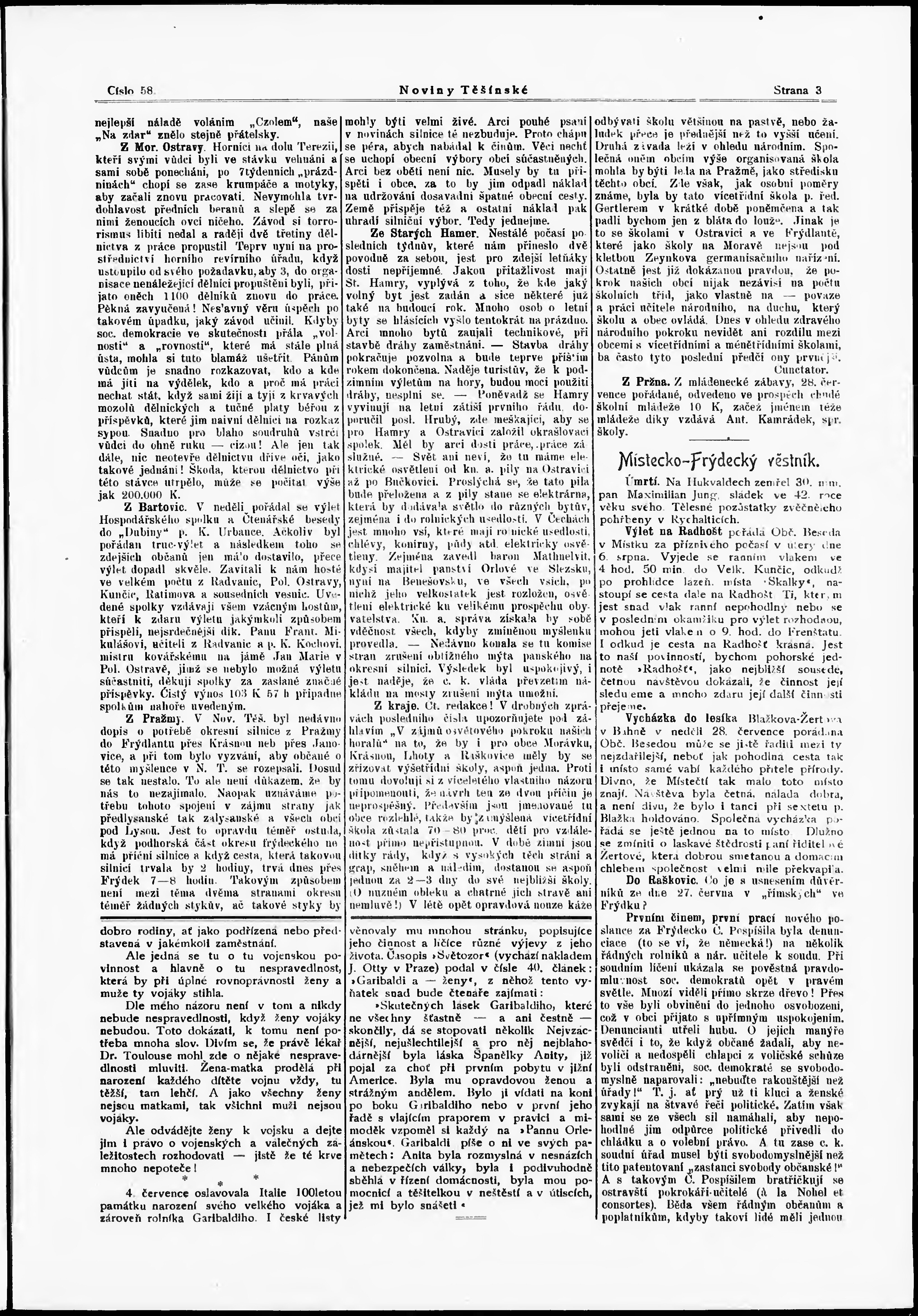 * Datum vydání výtisku: 3.8.1907 Číslo výtisku: 58