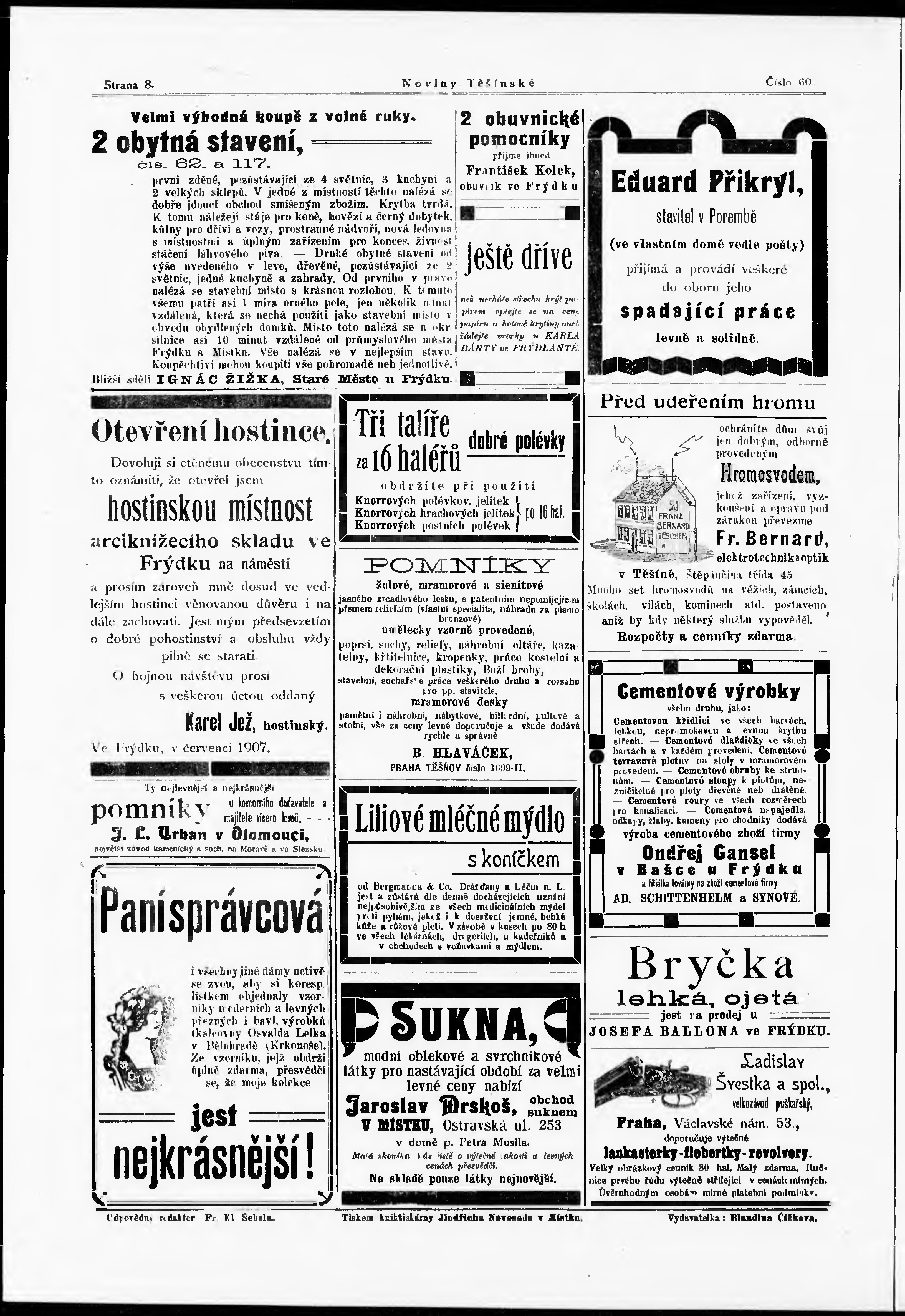 * Datum vydání výtisku: 10.8.1907 Číslo výtisku: 60