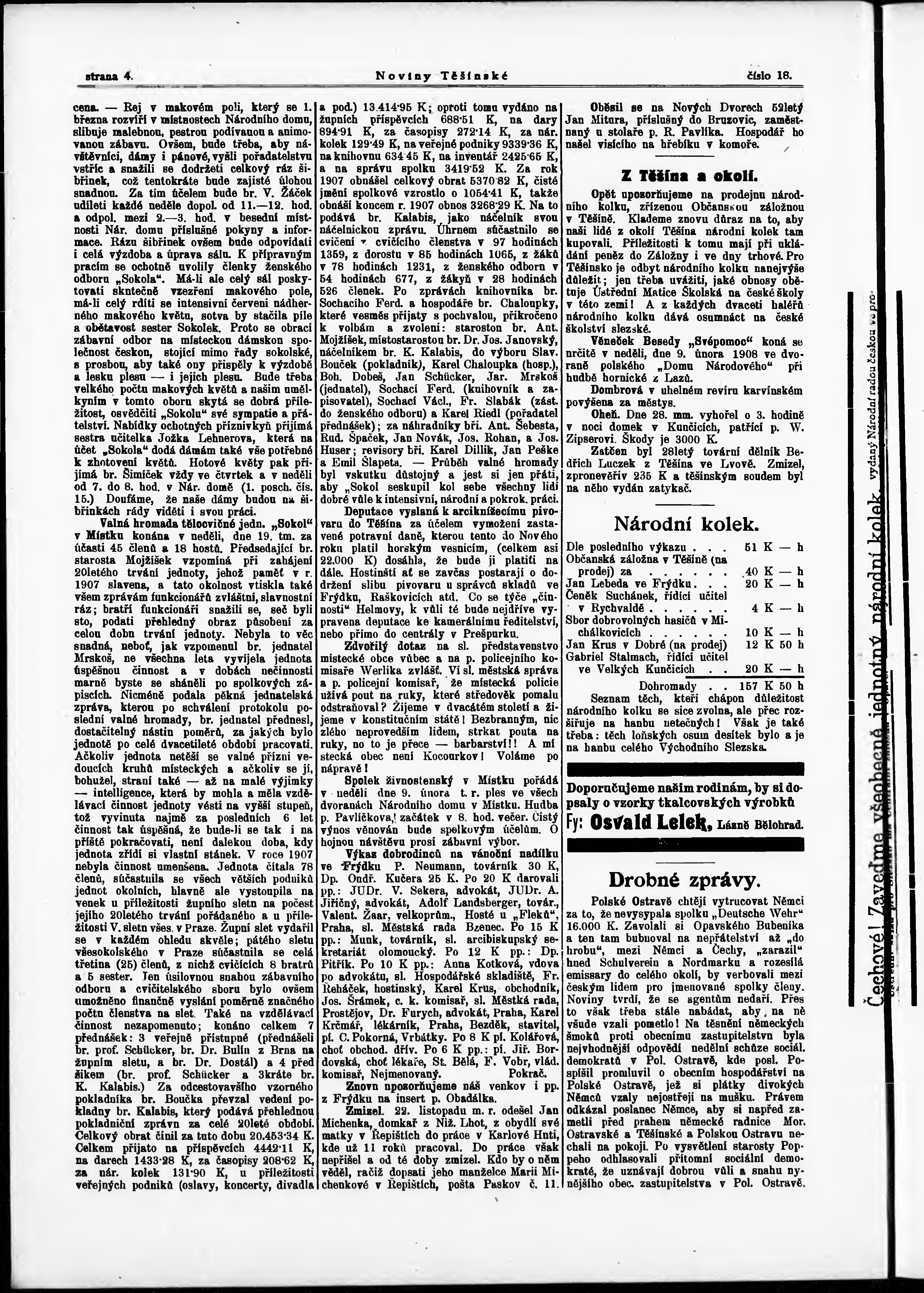 * Datum vydání výtisku: 1.2.1908 Číslo výtisku: 18