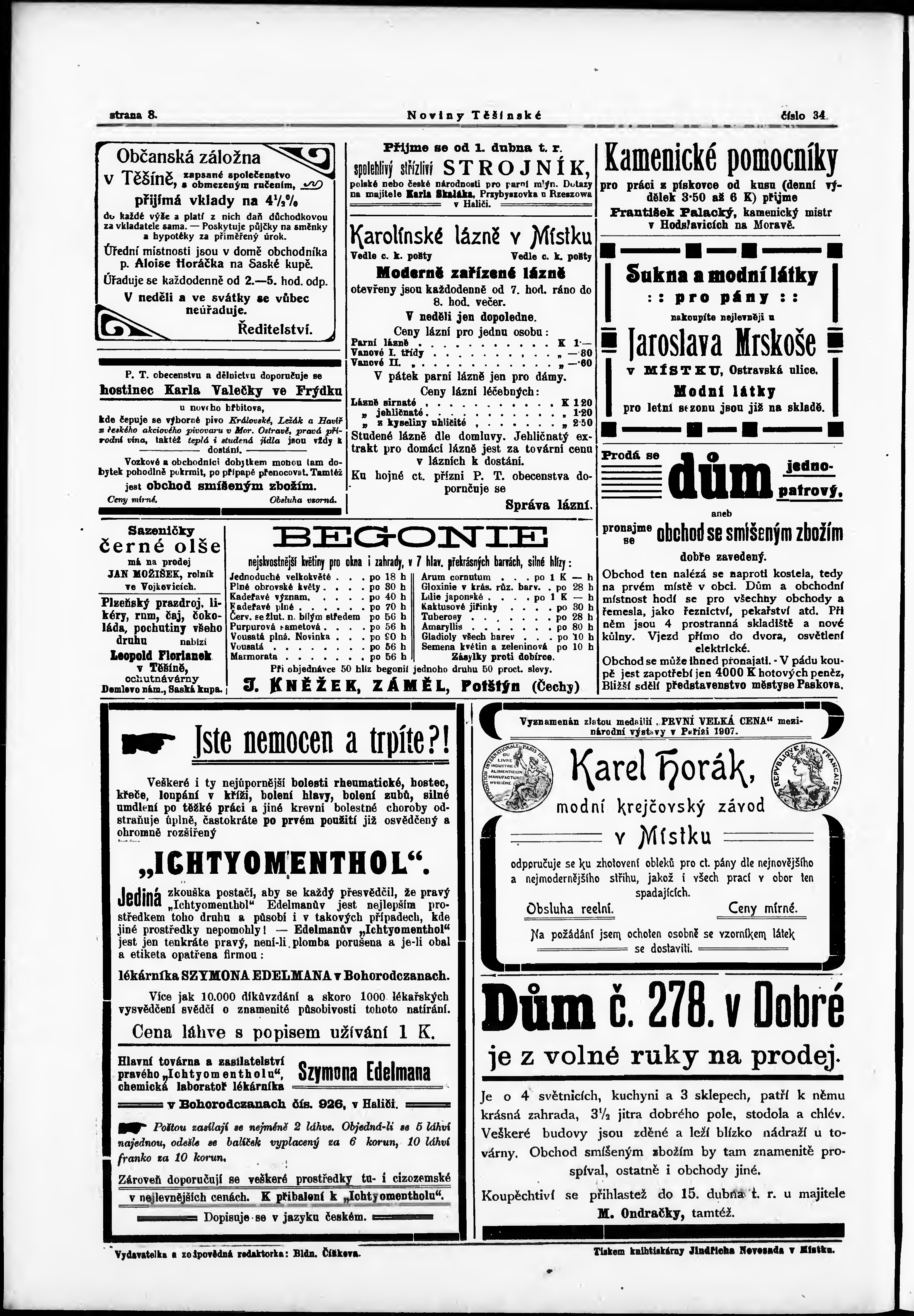 * Datum vydání výtisku: 28.3.1908 Číslo výtisku: 34