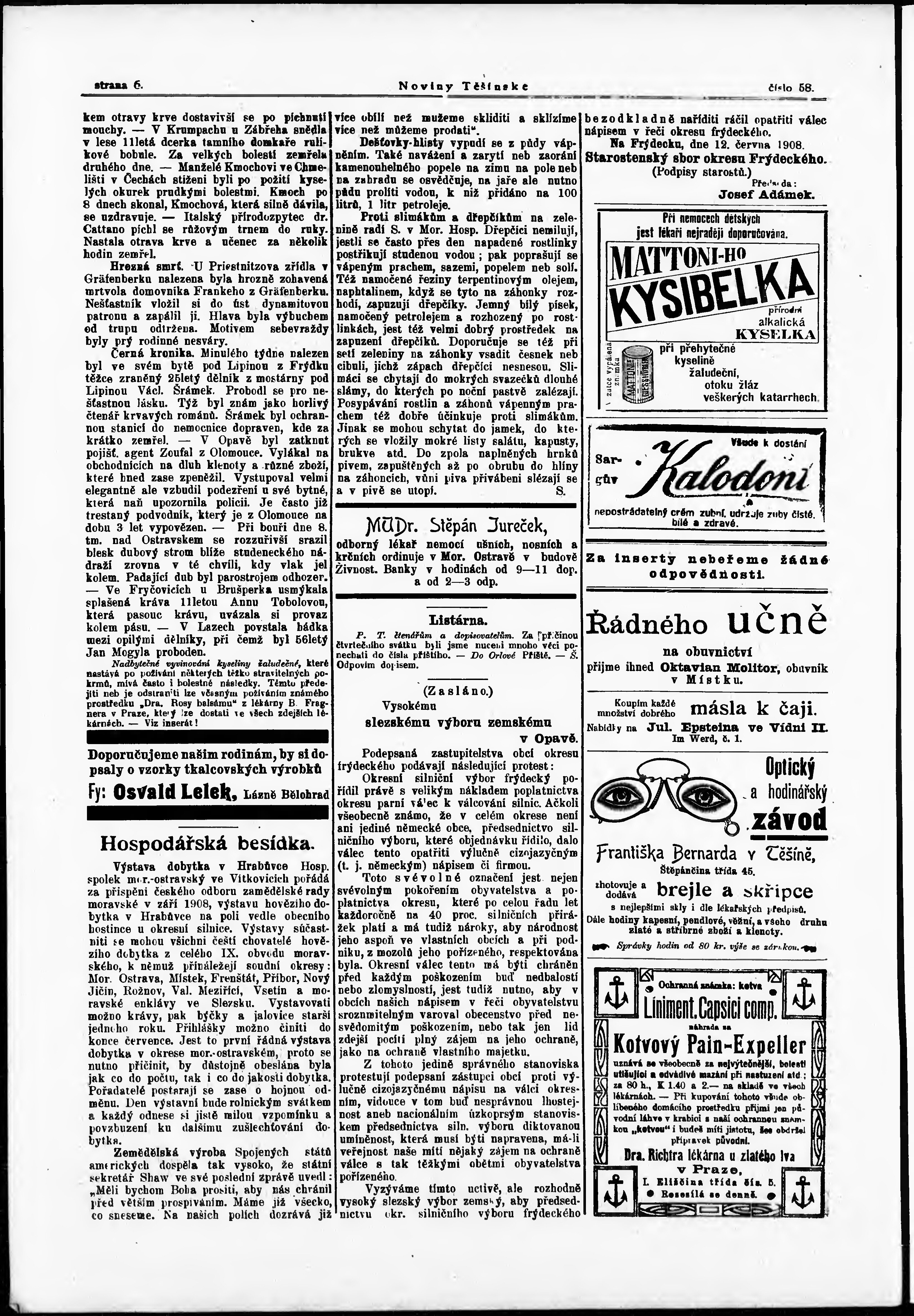 * Datum vydání výtisku: 20.6.1908 Číslo výtisku: 58