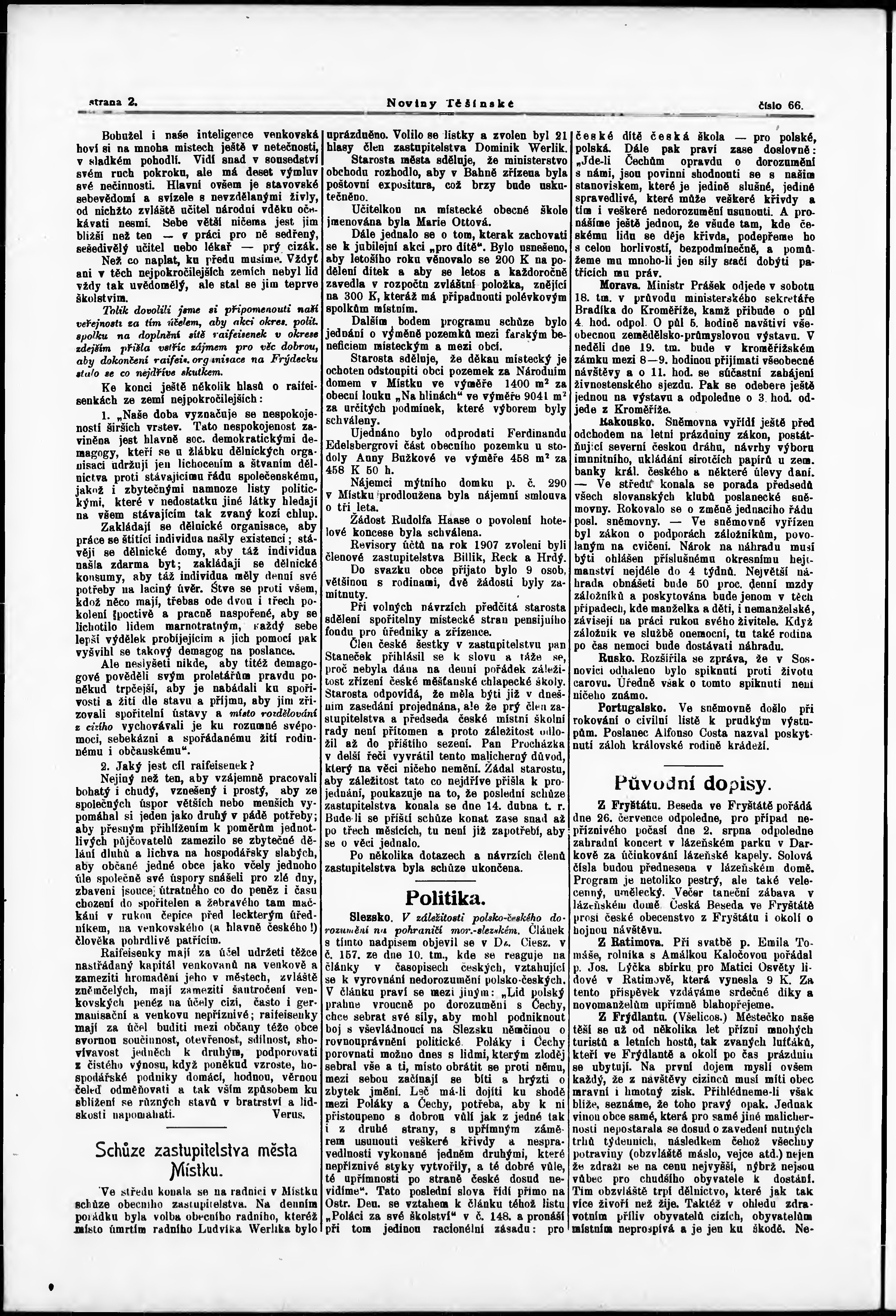 * Datum vydání výtisku: 18.7.1908 Číslo výtisku: 66