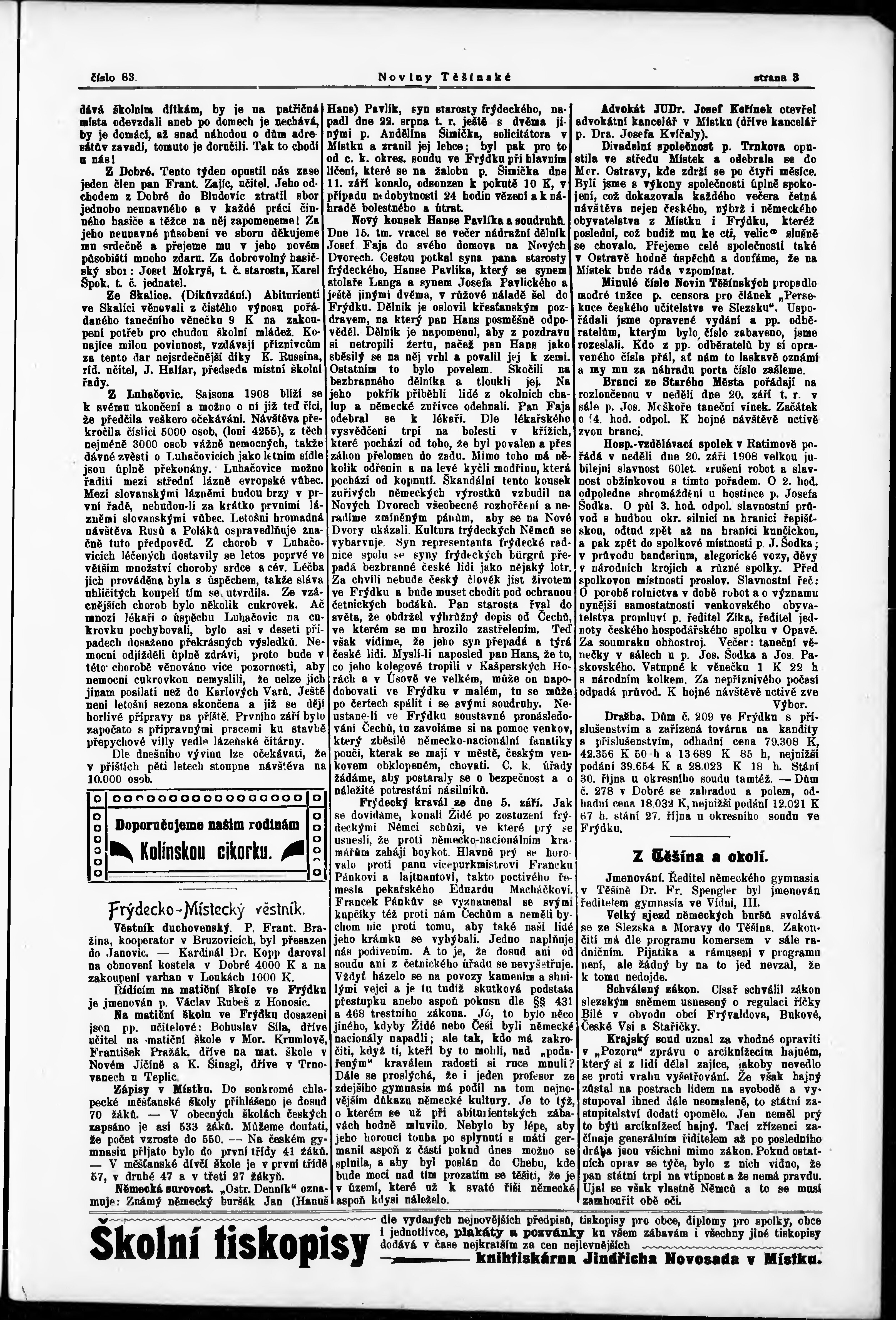 * Datum vydání výtisku: 19.9.1908 Číslo výtisku: 83