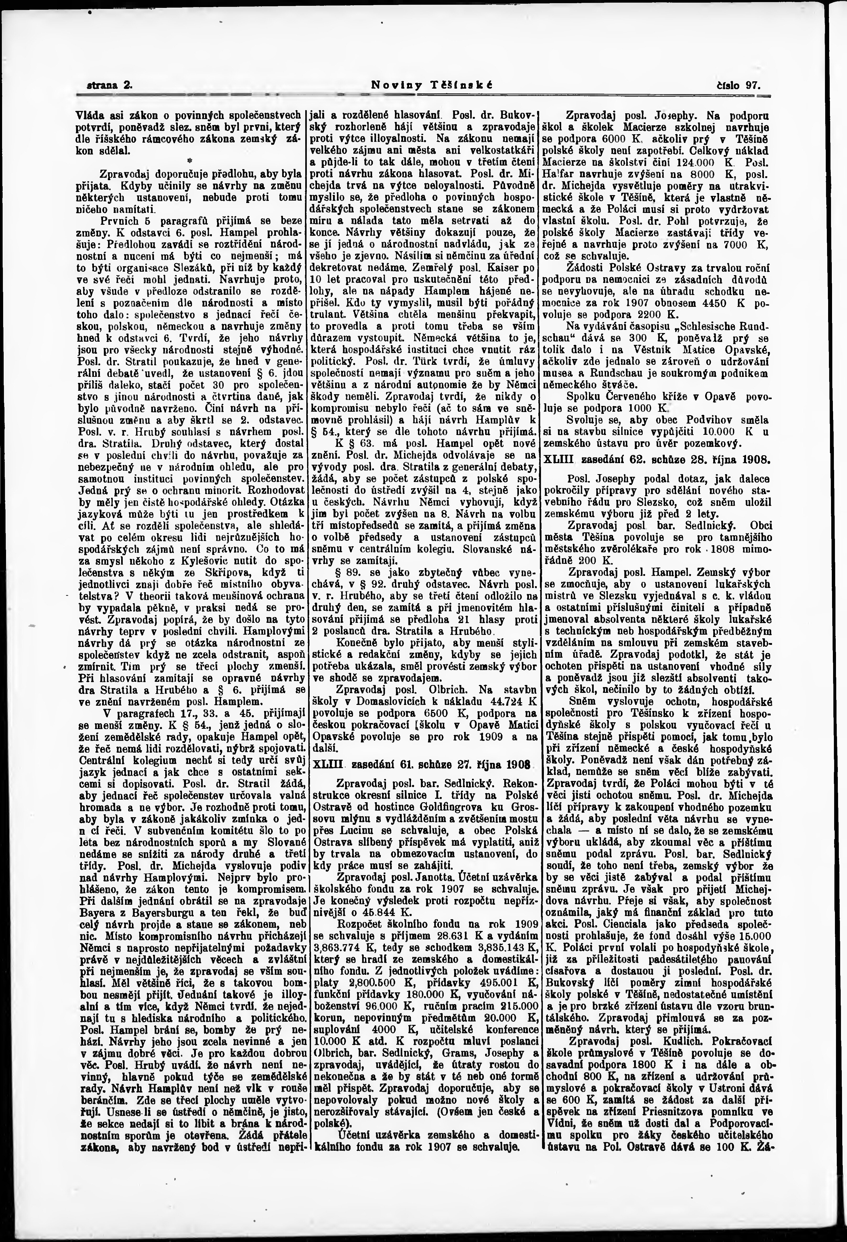 * Datum vydání výtisku: 7.11.1908 Číslo výtisku: 97
